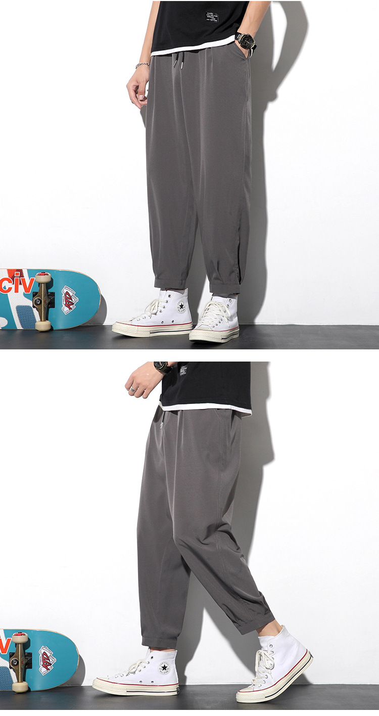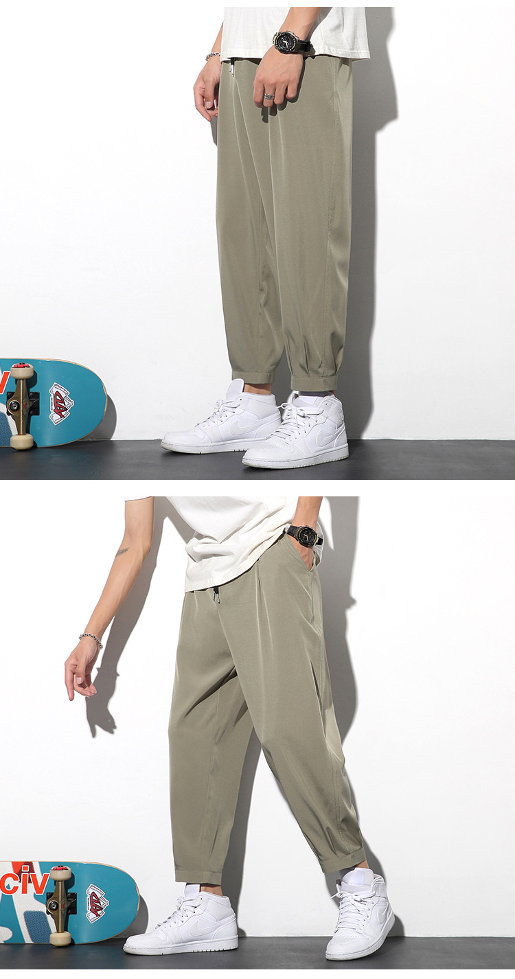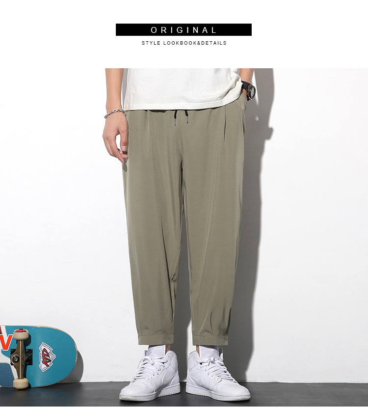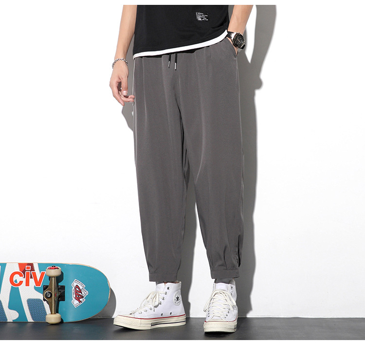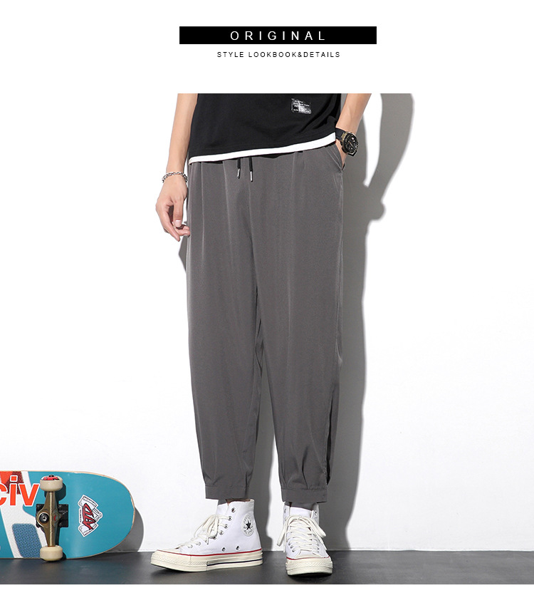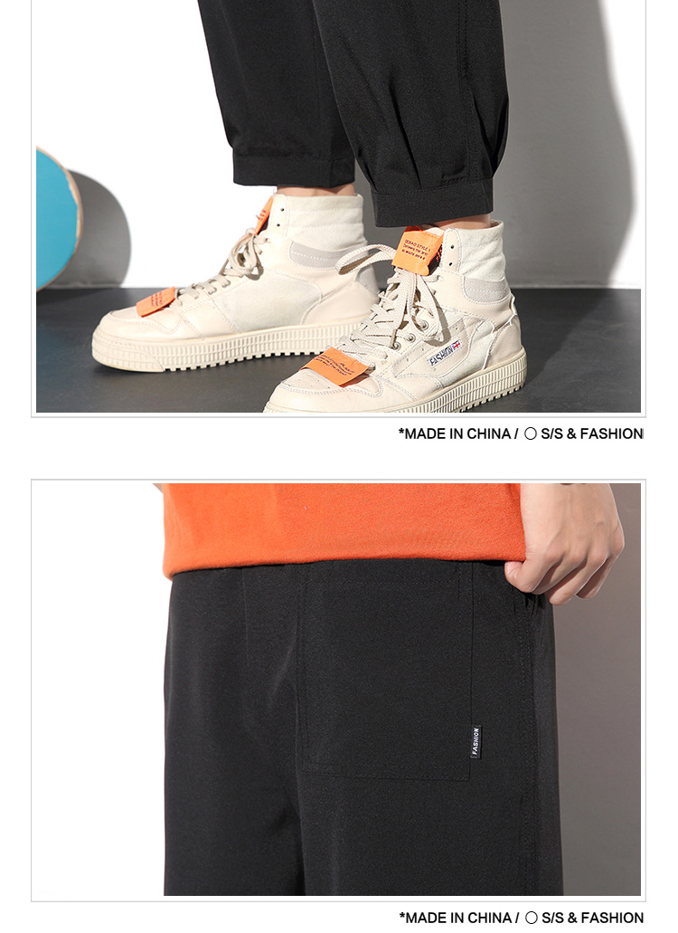 商品属性 [上市年份/季节] 2024年夏季 [主要下游平台] ebay,亚马逊,wish,速卖通,独立站,LAZADA [主要销售地区] 非洲,欧洲,南美,东南亚,北美,东北亚,中东 [主面料成分] 聚酯纤维(涤纶) [主面料成分的含量] 95 [厚薄] 薄款 [原创设计货源] 是 [图案] 纯色 [工艺] 免烫处理 [库存类型] 整单 [弹力] 微弹 [是否库存] 是 [是否有腰带] 有腰带 [是否跨境出口专供货源] 是 [有可授权的自有品牌] 否 [有无质检报告] 否 [材质功能] 透气 [款式] 基本款 [款式细节] 撞色 [淘货类别] 青春流行(18-24岁) [类别] 运动休闲裤 [腰型] 中腰 [裤型] 宽松型 [裤脚口款式] 小脚 [裤长] 九分裤 [裤门襟] 系绳闭襟 [误差范围] 1-2CM [货源类别] 现货 [适合人群] 大码 [适合季节] 夏季 [适用场景] 休闲 [面料] 冰丝 [面料名称] 冰丝 [风格] 韩版