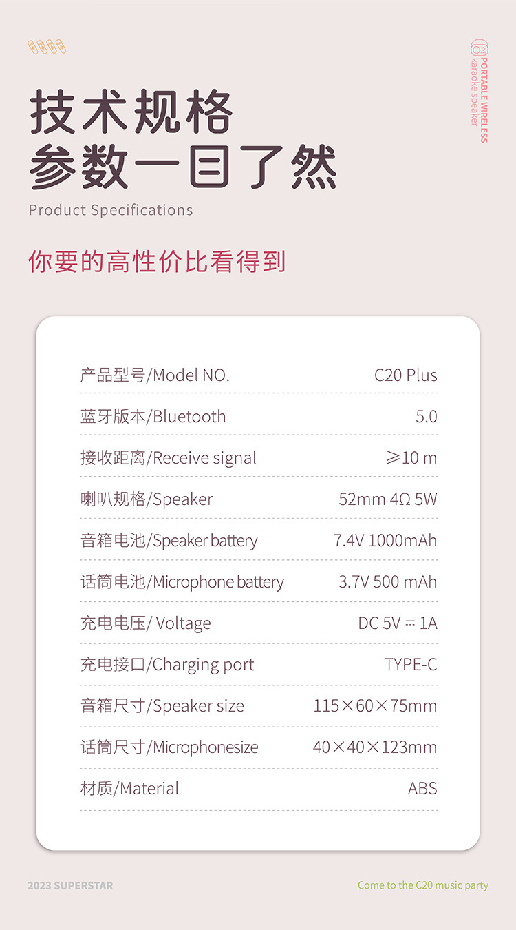 产品尺寸:40*40*123 mm (话筒)/115*60*75mm(音箱)