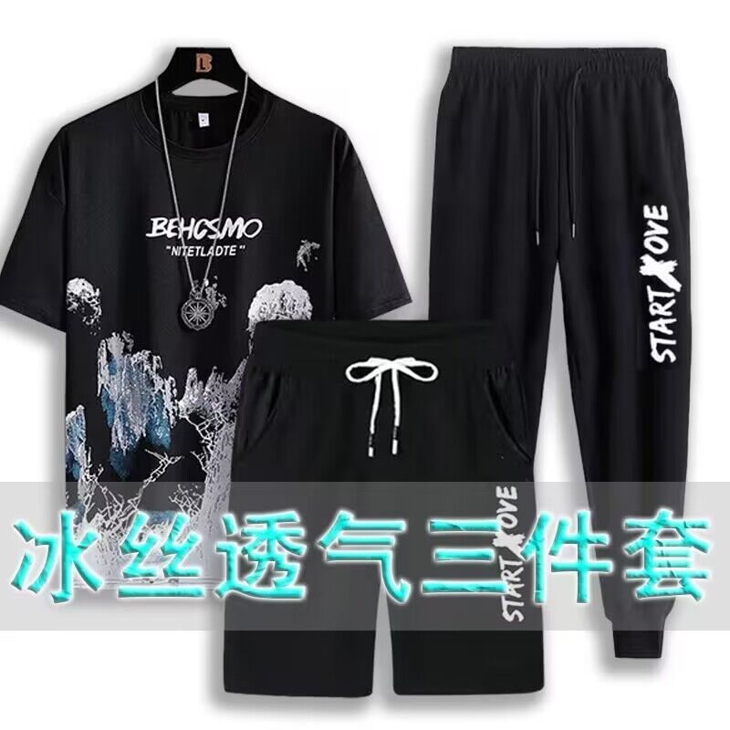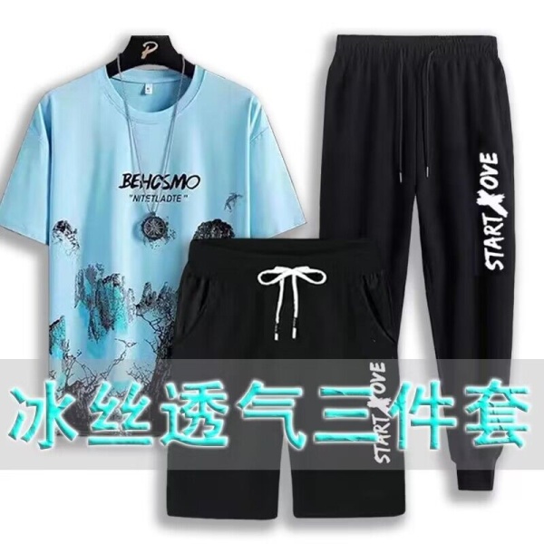 商品属性 [上市年份/季节] 2023年夏季 [上衣款式] T恤 [上衣袖长] 短袖 [主面料成分] 聚酯纤维(涤纶) [主面料成分的含量] 95 [厚薄] 薄款 [原创设计货源] 否 [库存类型] 整单 [是否跨境出口专供货源] 否 [是否连帽] 不连帽 [有无质检报告] 否 [淘货类别] 青春流行(18-24岁) [裤长] 长裤 [货源类别] 现货 [适合季节] 夏季 [适用场景] 休闲 [面料名称] 牛奶丝 [风格] 运动