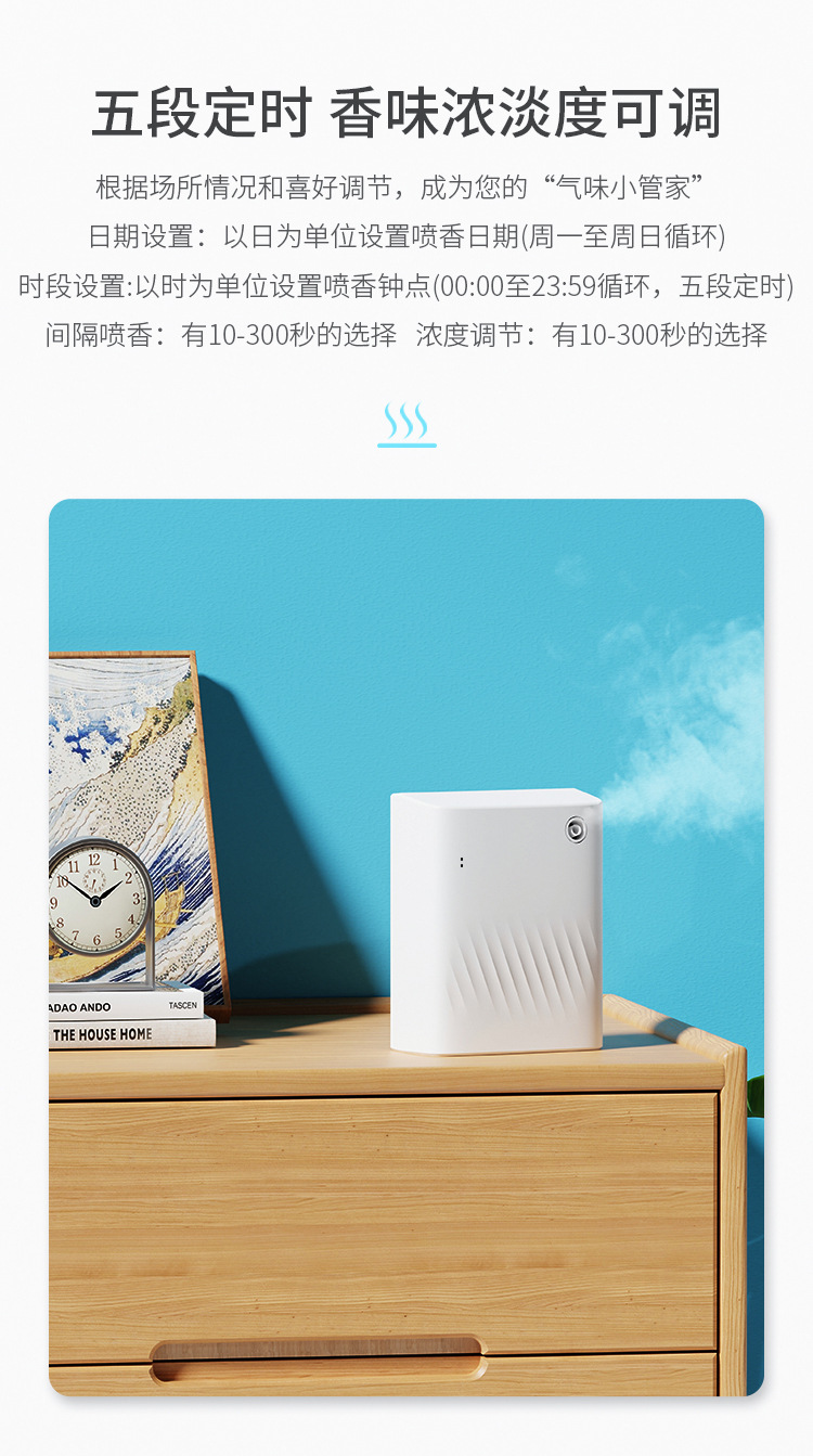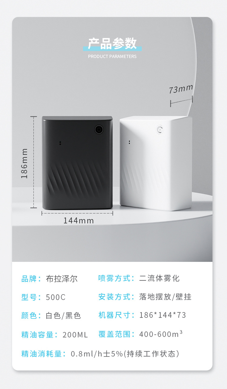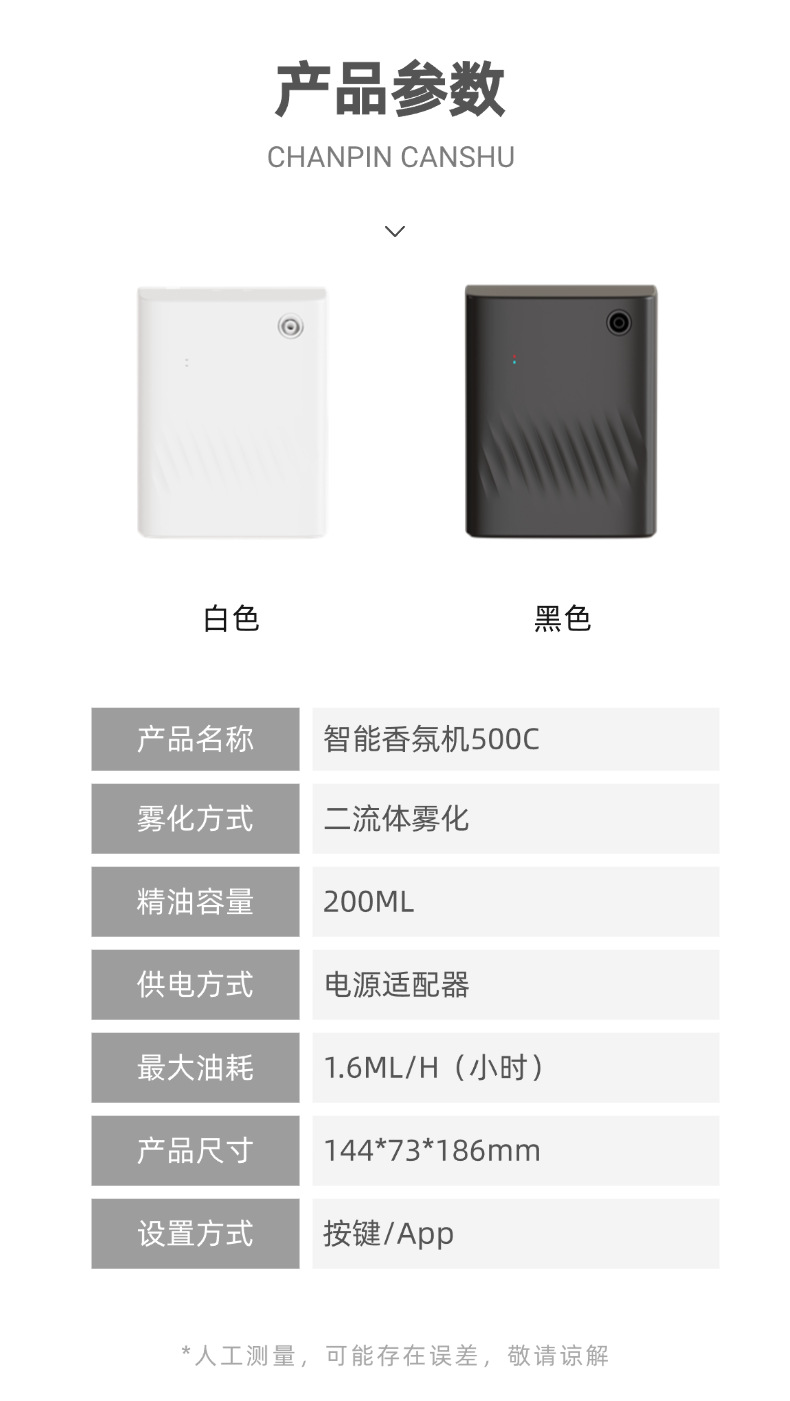 商品属性 [出雾口数] 1个 [功能] 香薰,静音,自动喷香机,扩香,预约 [喷雾方式] 前喷 [噪音] 36-45db [型号] 500B [外形] 方型 [定时功能] 8小时以上 [扩香范围] 500立方 [操作方式] 遥控式 [是否内置电池] 无电池 [是否有定时预约功能] 是 [是否防烧干] 是 [材质] 树脂 [款式] 台式 [水箱容量] 0.5-1L(含) [电源方式] 交流电 [类型] 有雾型 [缺水断电保护] 是 [适用场景] 家用,商用 [适用面积] 61㎡ 及以上 [风格] 日韩风,复古风,创意风,简约风,卡通风,北欧风,美式风,工业风,ins风,国潮风