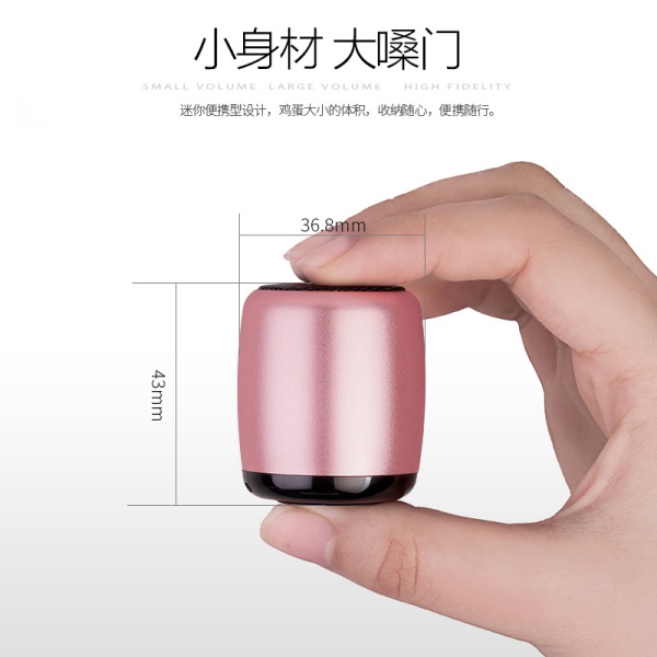 商品属性 [上市时间] 2023 [主要下游平台] ebay,亚马逊,wish,速卖通,独立站,LAZADA [主要销售地区] 南美,东南亚,北美,东北亚,中东,拉丁美洲,欧美,其他 [产品净重] 45 [信噪比] ≥75dB [内置蓄电池容量] 300mAh-500mAh(含) [售后服务] 店铺三包 [喇叭单元] 3W [喇叭数] 1个 [外壳工艺] 铝合金 [外观尺寸] 43(L)x36.8(φ)mm [支持格式] 蓝牙 [是否专利货源] 否 [是否内置电池] 内置电池 [是否外贸] 是(本商品仅供外贸用途,可能不符合境内产品标准。请境内买家谨慎购入。) [是否跨境出口专供货源] 是 [有效距离] 10米 [电源方式] USB [箱体材质] 金属 [蓝牙版本] 5.0 [认证类型] ce,FCC [连接方式] 蓝牙连接 [适用场景] 桌面,健身运动,户外,移动便携,户外草坪 [防水等级] 不防水 [频响范围] 100HZ-20KHZ [额定功率] 3 [额定电压] 3.7