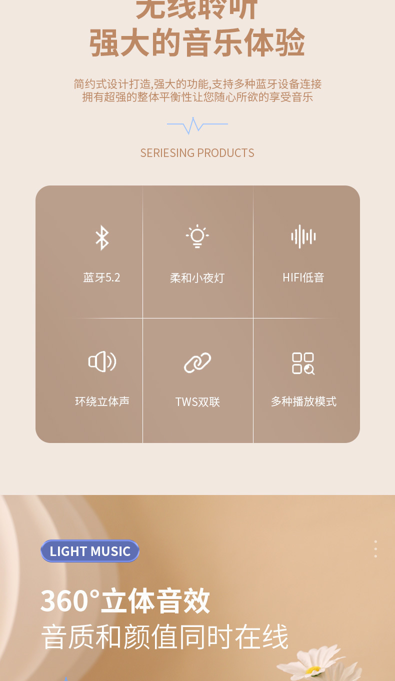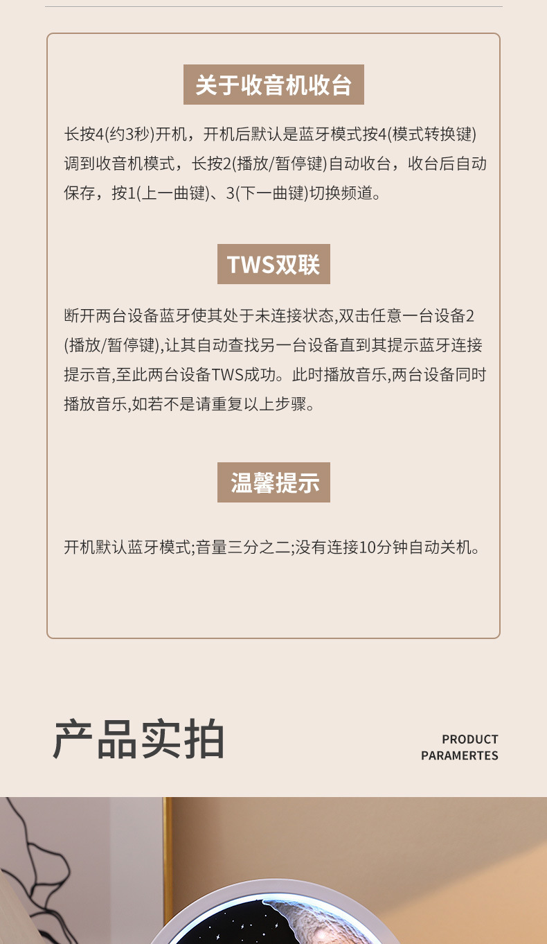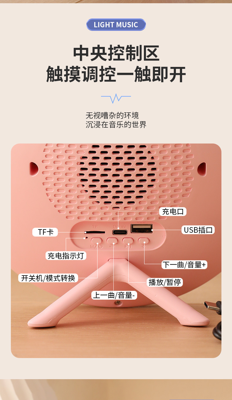 商品属性 [上市时间] 2023 [产品净重] 0.43kg [信噪比] ≥75dB [内置蓄电池容量] 1200mAh-2000mAh(含) [售后服务] 店铺三包 [喇叭数] 1 [外观尺寸] 200X200X73 [是否专利货源] 否 [是否内置电池] 内置电池 [是否外贸] 否 [是否跨境出口专供货源] 否 [有效距离] 10米 [电源方式] 锂电池 [箱体材质] ABS [蓝牙版本] 5.2 [连接方式] 蓝牙连接 [适用场景] 桌面,户外,居家 [防水等级] 不防水 [附加功能] 插卡 [频响范围] 60Hz-15KHz [额定功率] 5W [额定电压] 5V