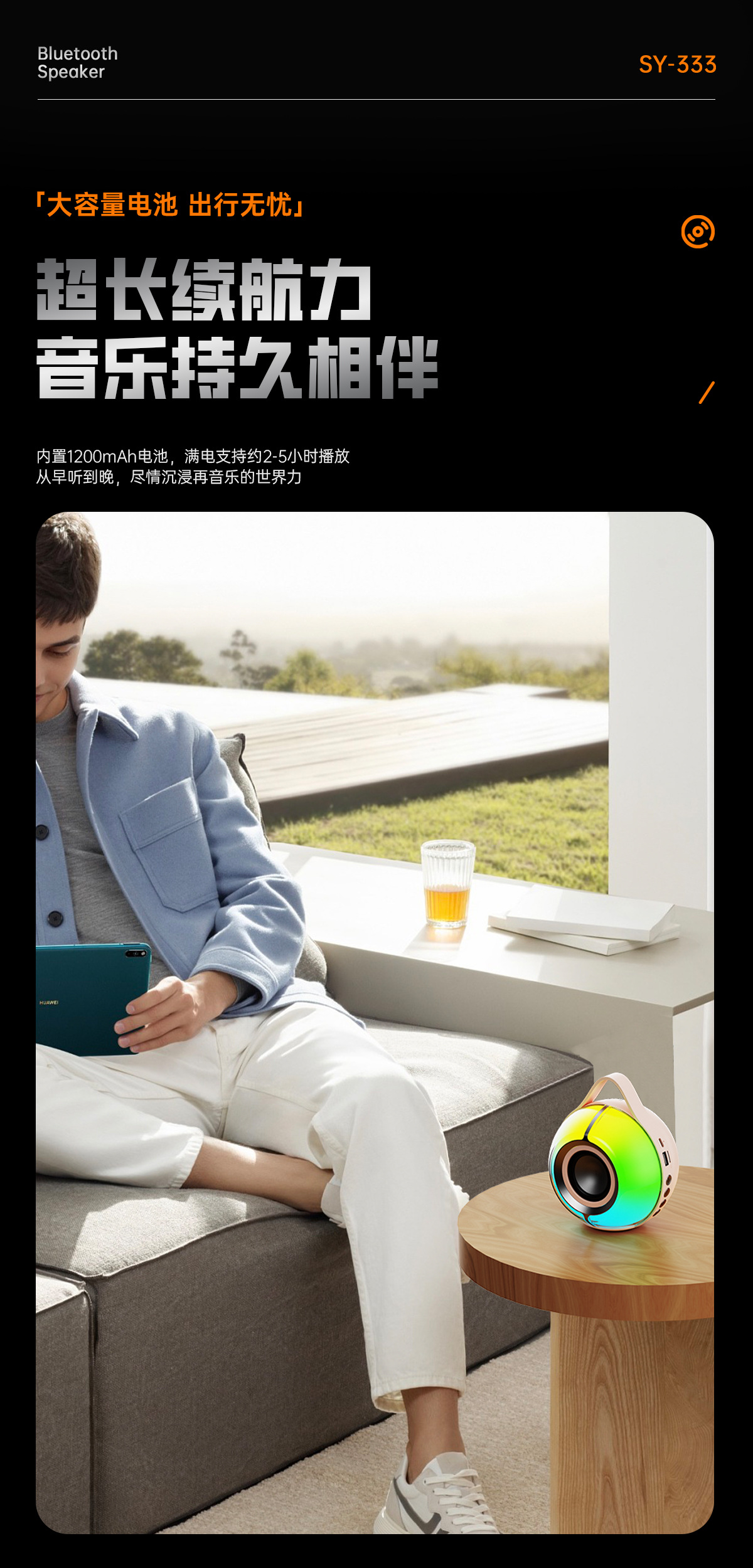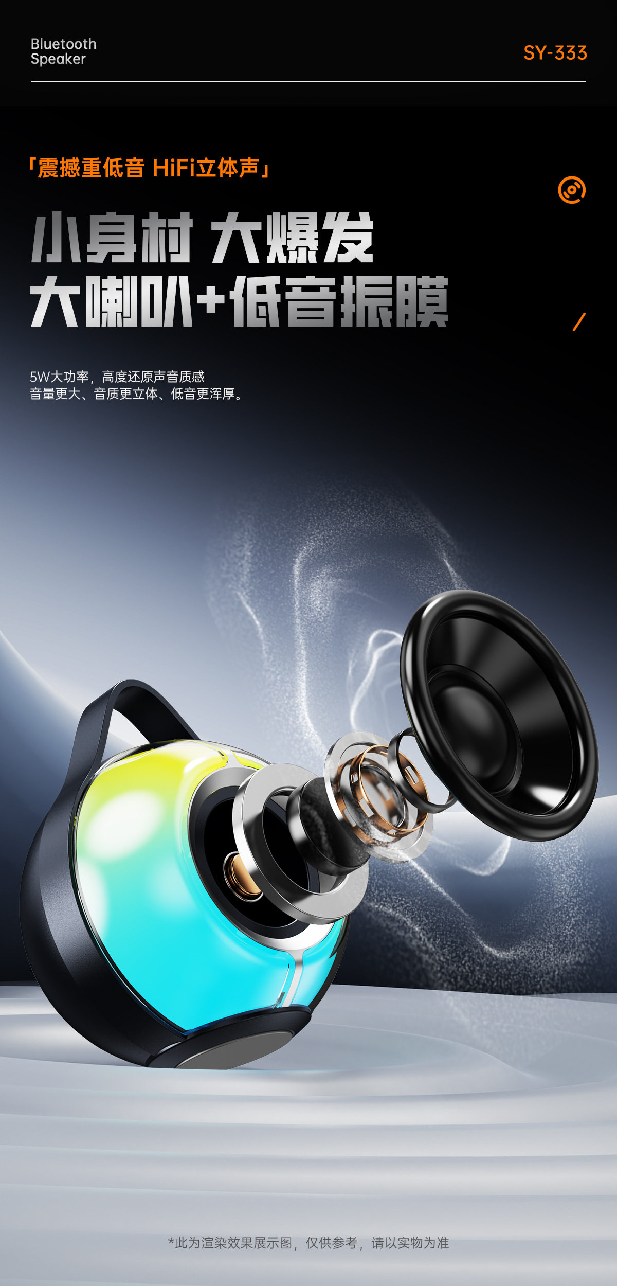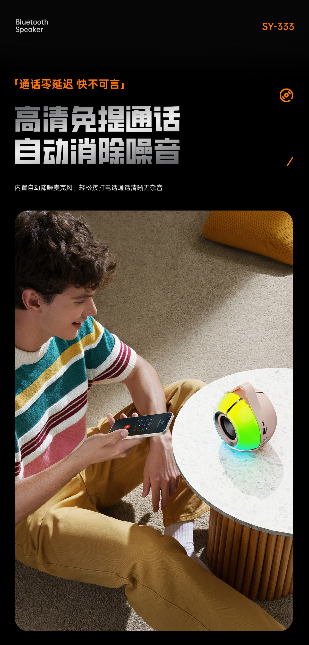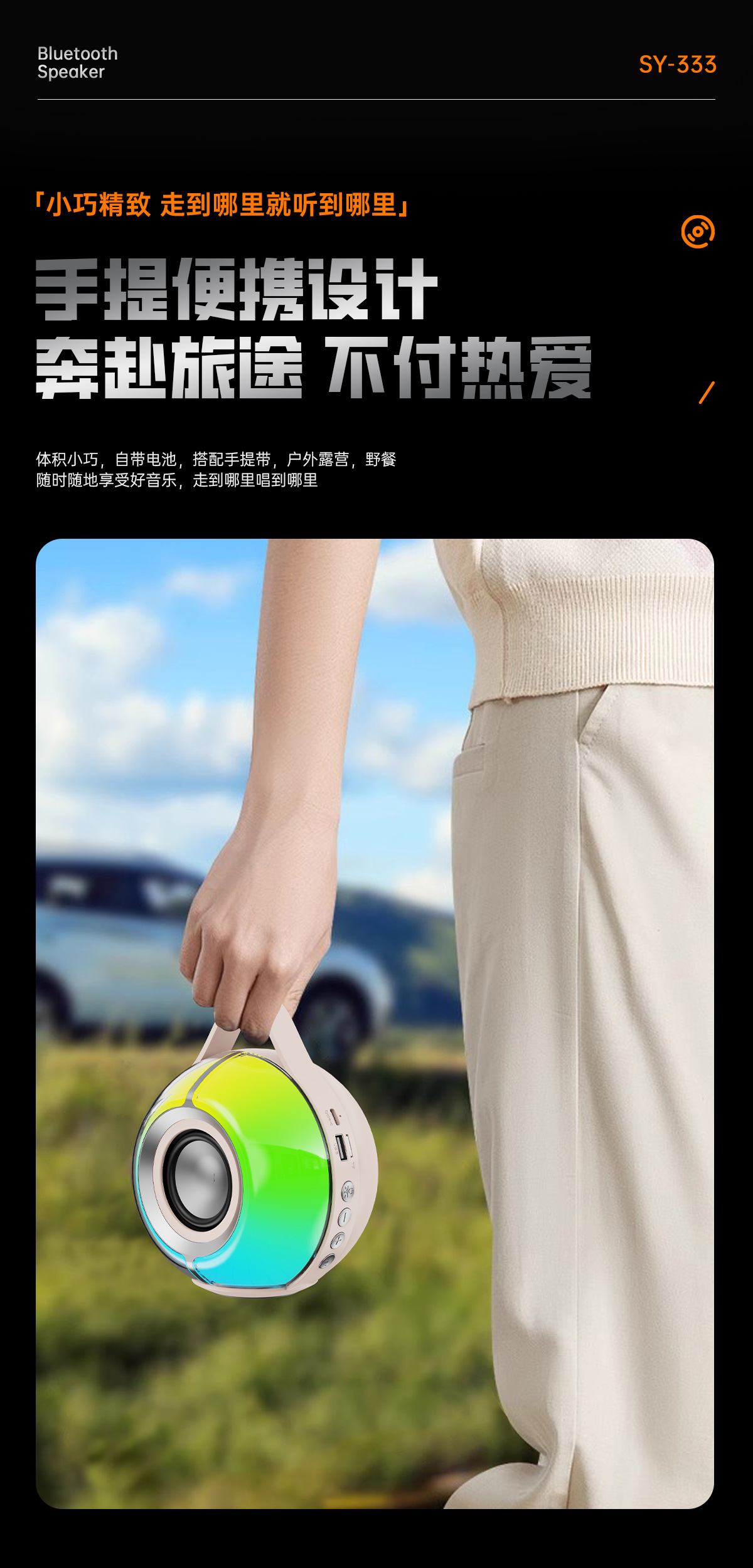 商品属性 [上市时间] 2025 [主要下游平台] ebay,亚马逊,wish,速卖通,独立站,LAZADA [主要销售地区] 日韩,非洲,韩国,日本,欧洲,南美,东南亚,北美,东北亚,中东,拉丁美洲,欧美 [产品净重] 440 [产地] 深圳 [信噪比] ≥70db [内置蓄电池容量] 1000mAh-1200mAh(含) [售后服务] 店铺三包 [喇叭数] 1个 [外观尺寸] 128*95*150 [是否专利货源] 否 [是否内置电池] 内置电池 [是否外贸] 否 [是否跨境出口专供货源] 是 [有效距离] 10米 [电池容量] 1200 [电源方式] USB [箱体材质] 塑料 [蓝牙版本] 5.3 [输出功率] 5W [连接方式] 蓝牙连接 [适用场景] 车载,桌面,健身运动,户外,居家,移动便携,K歌,直播,广场舞,广播系统,户外草坪 [防水等级] 不防水 [附加功能] 插卡,照明 [频响范围] 100HZ-20KHZ [额定功率] 5W [额定电压] 5