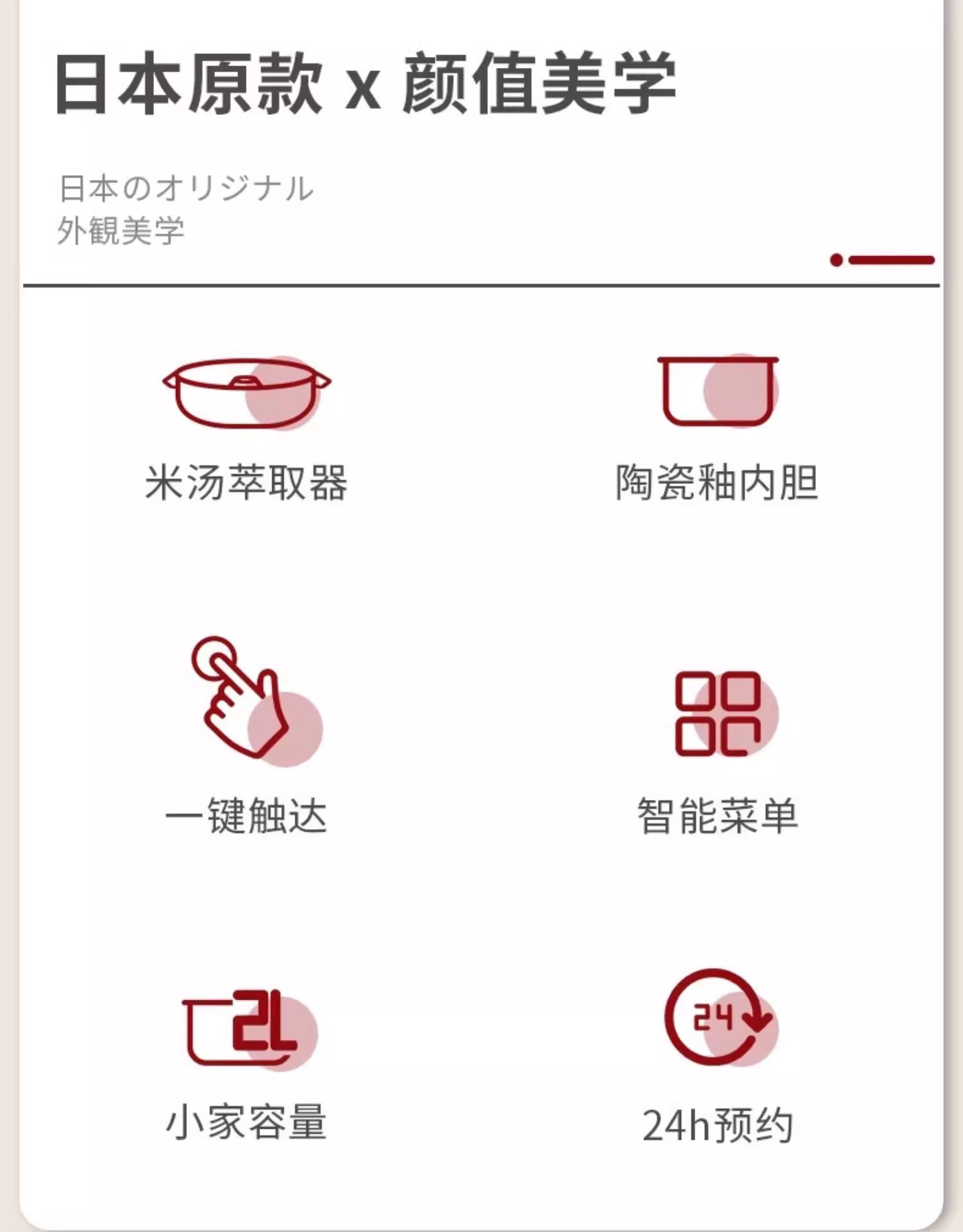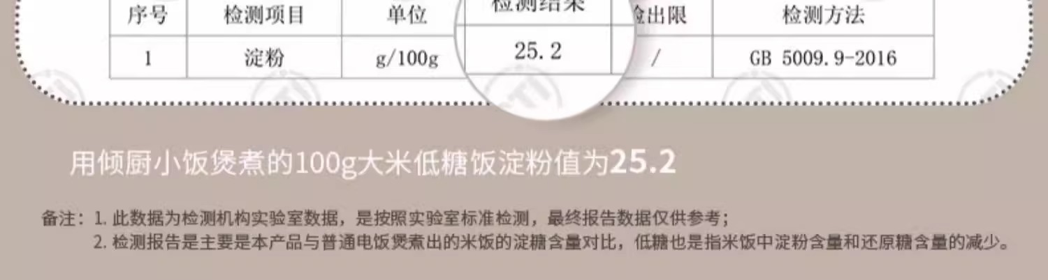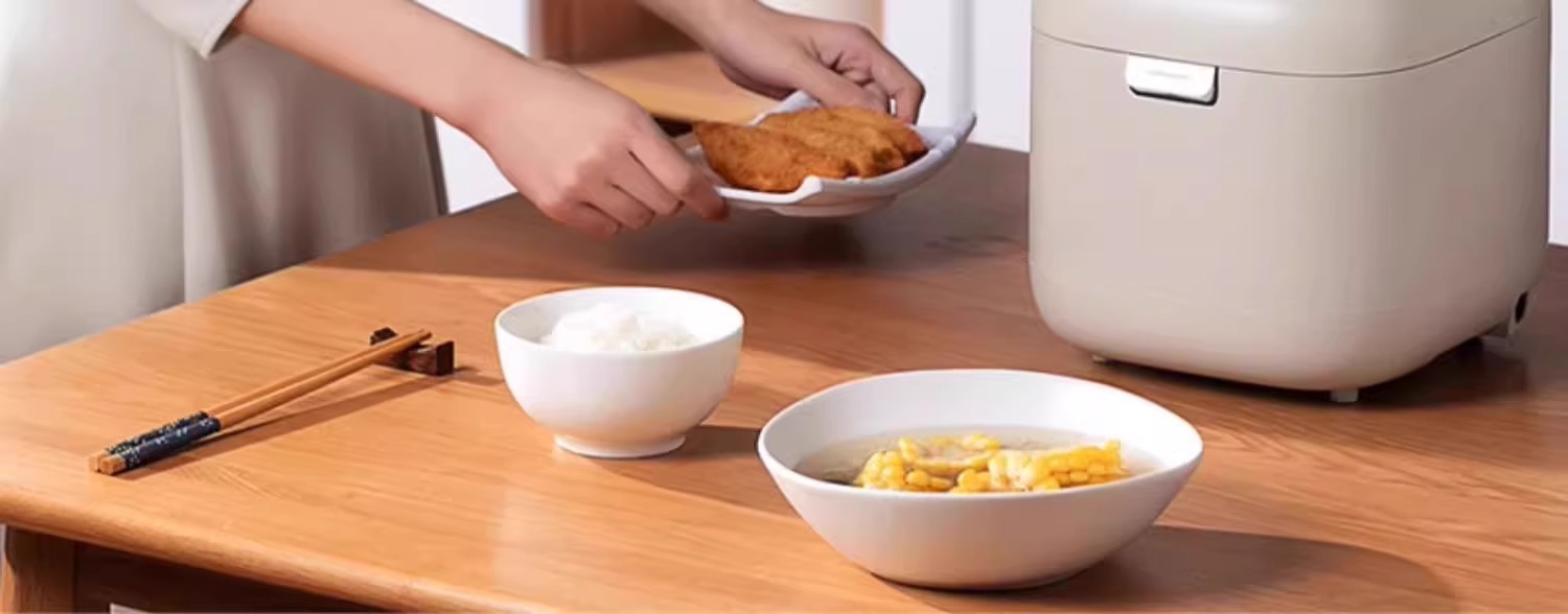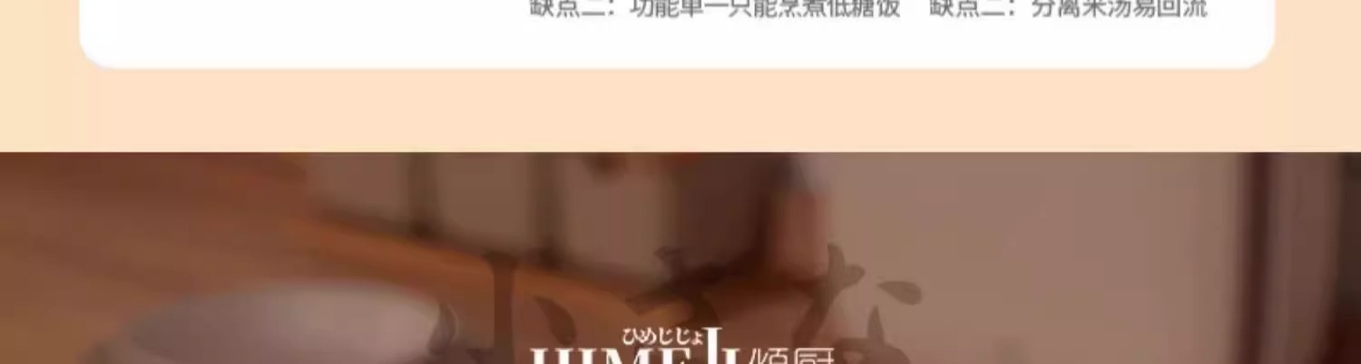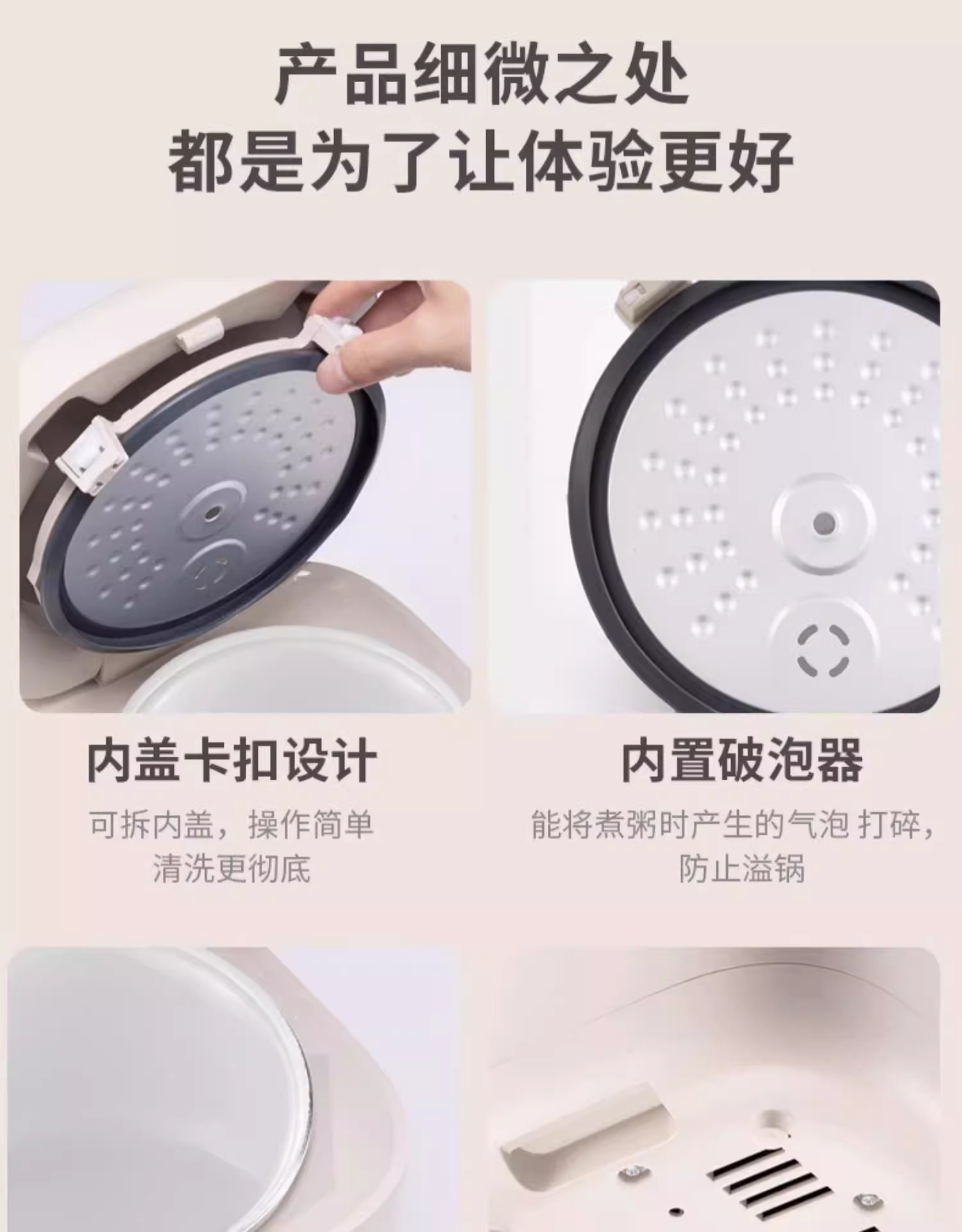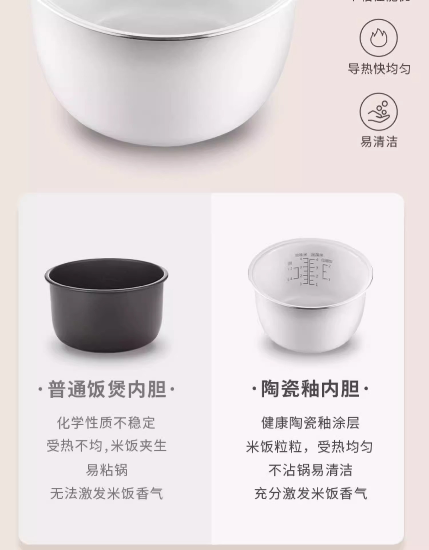 商品属性 [3C证书编号] 2022010718448494 [上市时间] 2021-09 [产品尺寸] 230*210*210mm [内胆材质] 陶瓷釉 [刻度标示] 内壁标示 [功率] 800W以下 [功能] 蛋糕,定时,预约,低糖煮饭,其他 [加热方式] 底盘加热 [包装清单] 饭煲*1锅胆*1米汤萃取器*1饭勺*1量杯*1电源线*1说明书*1 [售后服务] 质保一年 [型号] HRC0A001(R) [容量] 3L以下 [控制方式] 微电脑式 [操作方式] 触摸式 [是否有保温功能] 是 [是否跨境出口专供货源] 否 [智能类型] 不支持智能 [机身材质] 铝合金 [液晶显示] 有 [能效等级] 3级 [适用人数] 2-3人 [面板类型] 黑色微晶面板 [预约功能] 有 [额定功率] 400W [额定电压] 220 [额定频率] 50Hz