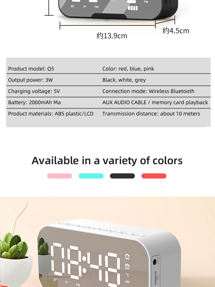 商品属性 [上市时间] 2022.9.12 [信噪比] ≥75dB [内置蓄电池容量] 800mAh-1000mAh(含) [售后服务] 店铺三包 [喇叭数] 2个 [外观尺寸] 138*69*40 [是否专利货源] 否 [是否内置电池] 内置电池 [是否外贸] 是(本商品仅供外贸用途,可能不符合境内产品标准。请境内买家谨慎购入。) [是否跨境出口专供货源] 是 [有效距离] 10米 [电源方式] USB [箱体材质] 其他 [蓝牙版本] 5.0 [认证类型] 其他 [连接方式] 蓝牙连接 [适用场景] 健身运动 [防水等级] 不防水 [频响范围] 其他 [额定功率] 3 [额定电压] 5