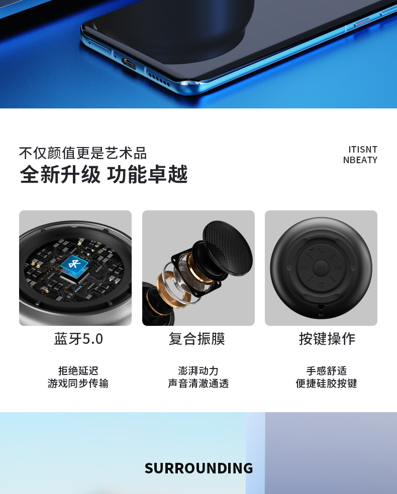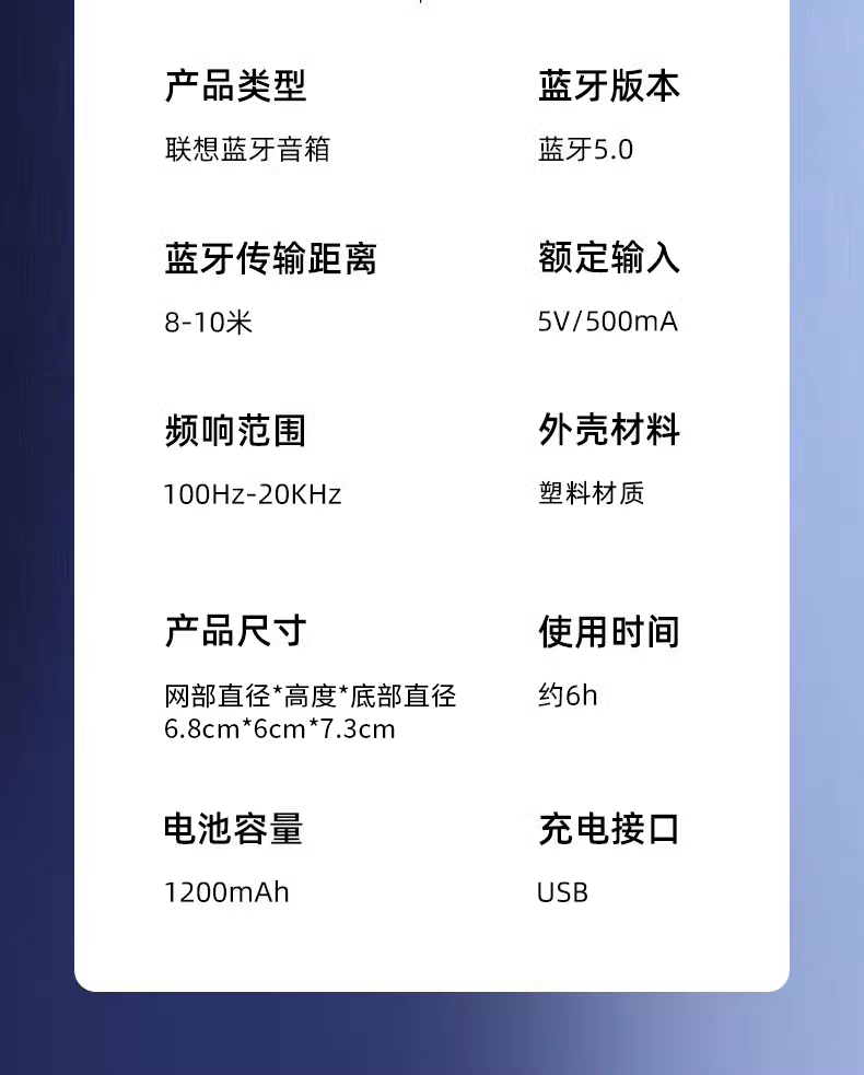 商品属性 [上市时间] 2025 [主要下游平台] ebay,亚马逊,wish,速卖通,独立站,LAZADA,其他 [主要销售地区] 日韩,非洲,韩国,日本,欧洲,南美,东南亚,北美,东北亚,中东,拉丁美洲,欧美,其他 [信噪比] ≥70db [内置蓄电池容量] 500mAh-800mAh(含) [售后服务] 店铺三包 [喇叭数] 1 [是否专利货源] 否 [是否内置电池] 内置电池 [是否外贸] 否 [是否跨境出口专供货源] 是 [有效距离] 10m [电源方式] 锂电池 [箱体材质] 塑料 [蓝牙版本] 5.0 [连接方式] 蓝牙连接 [适用场景] 车载,桌面,健身运动,户外,居家,移动便携,广场舞,户外草坪,其他 [防水等级] 不防水 [频响范围] 100HZ-20KHZ [额定功率] 5 [额定电压] 1