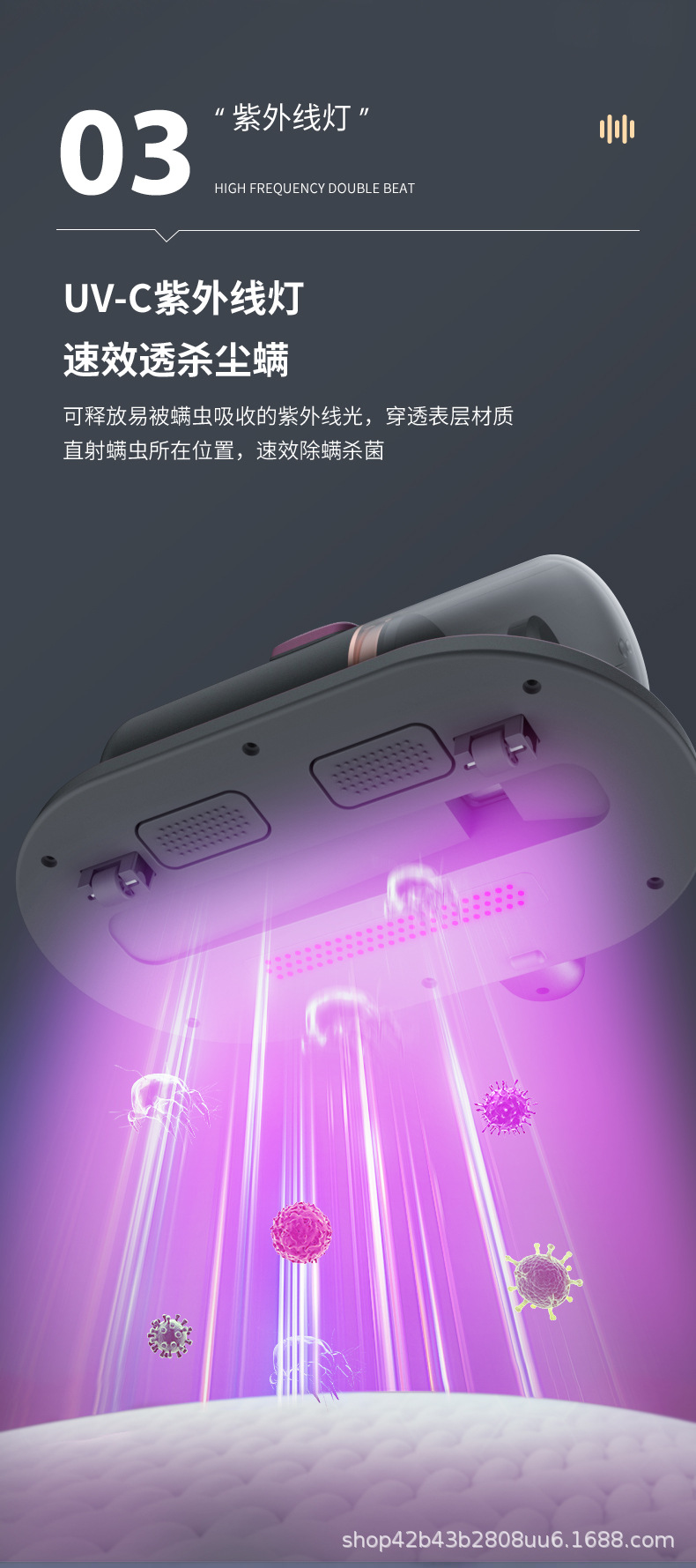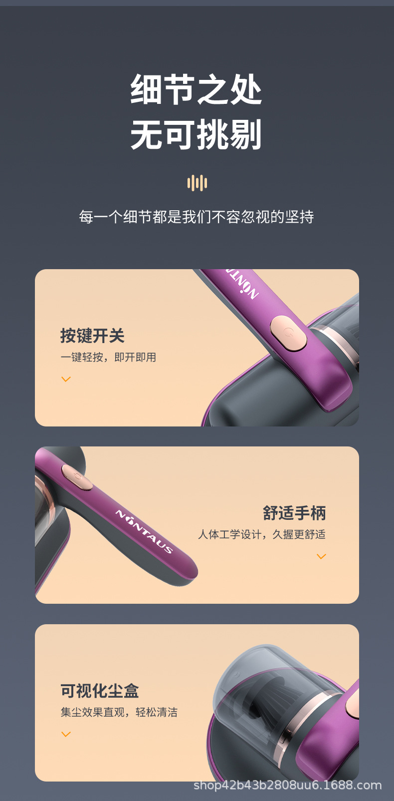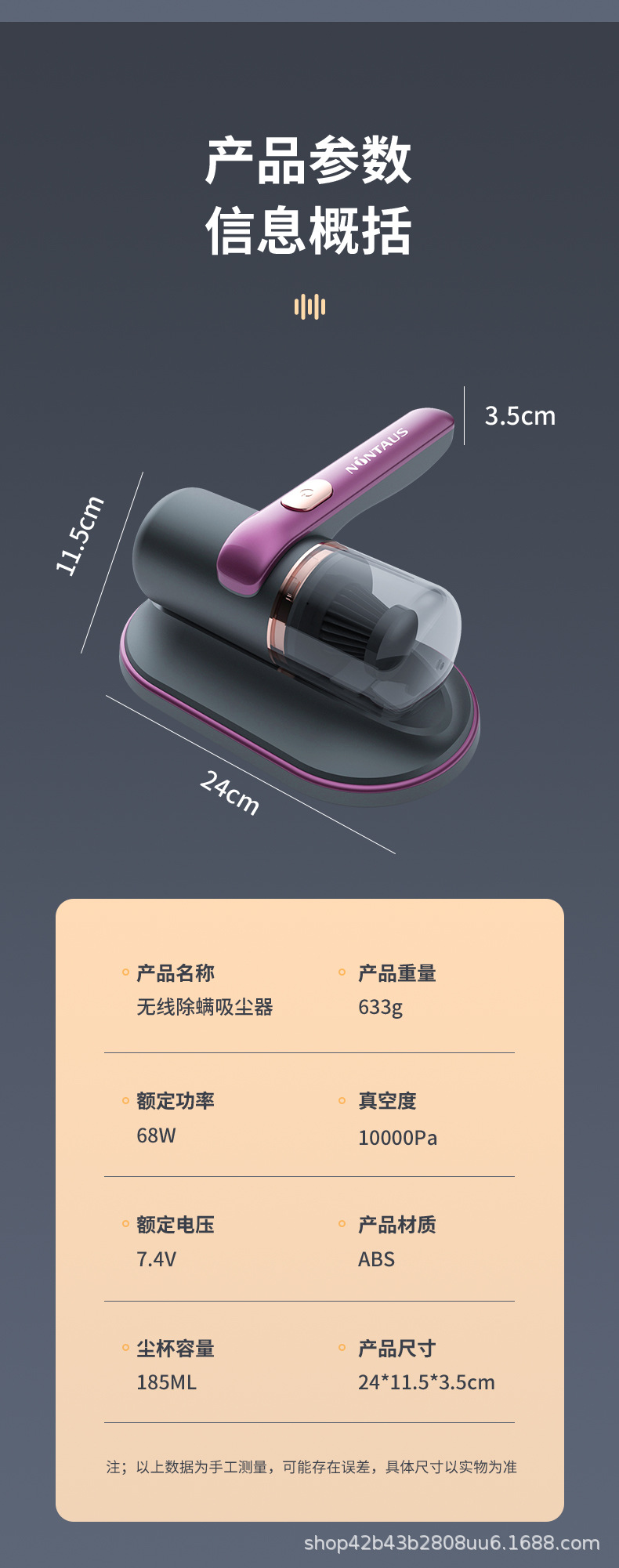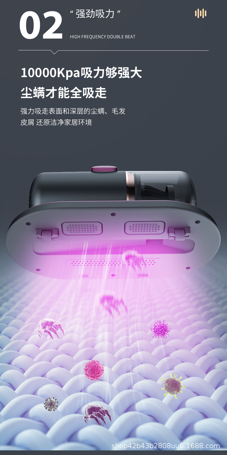 商品属性 [储尘类型] 尘盒/尘桶 [功能] 杀菌,紫外线除螨 [吸口宽度] 10-15cm(含) [噪音] 70db以上 [尘杯容积] 0.1-0.2L [拍打方式] 滚刷拍打 [操作方式] 按键式 [是否有线] 无线 [特殊吸嘴类型] 除螨刷头 [电源线长度] 无线 [额定电压] ≤36V [风格] 日韩风,复古风,创意风,简约风,卡通风,北欧风,美式风,工业风,国潮风,其他