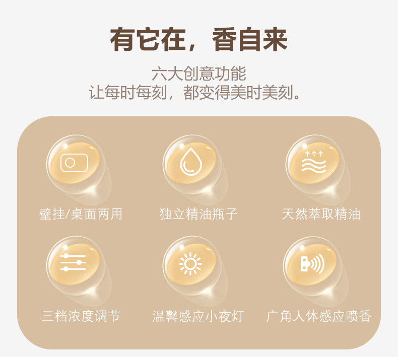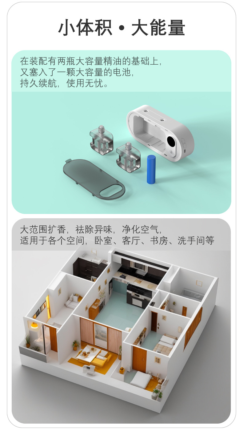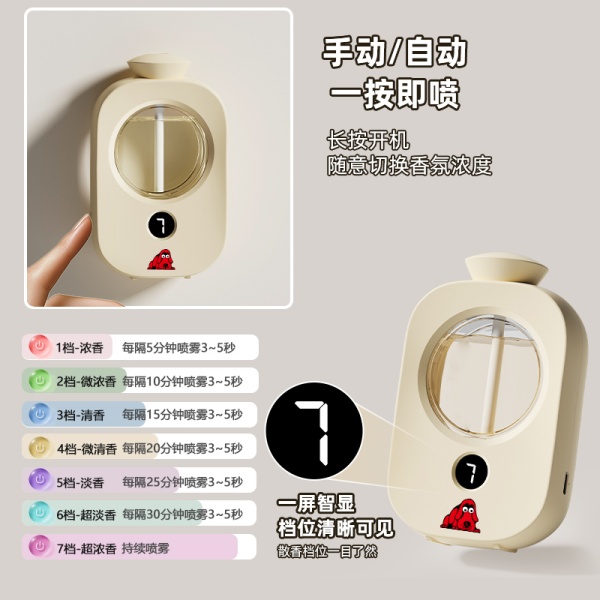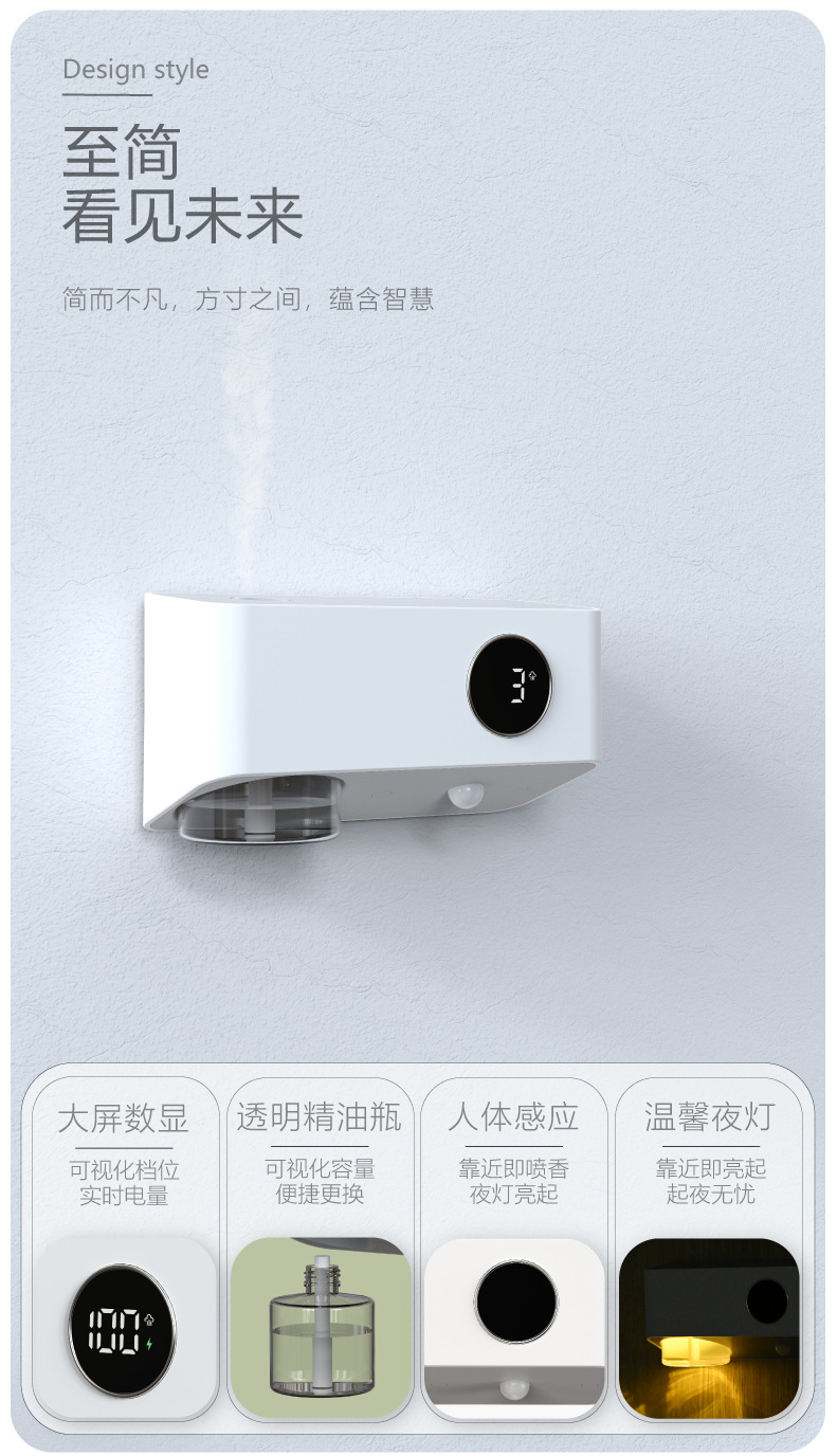 商品属性 [关键词1] 小米自动香氛机 自动香氛机电池款 自动香氛机车载 水磨石智能自动香氛机扩香机 自动香氛机补充液 [关键词2] 米家自动香氛机香薰机 加香机自动香氛机 智能香薰机家用自动香氛机 自动香氛机器 香薰机 加湿器 [内置蓄电池容量] 500mAh-800mAh(含) [出雾口数] 1个 [功能] 香薰,静音,照明,自动喷香机,扩香 [噪音] 36dB以下 [外形] 方型 [定时功能] 2小时以下 [操作方式] 按键式 [是否内置电池] 内置电池 [是否有定时预约功能] 是 [是否防烧干] 是 [材质] 其它 [款式] 壁挂式 [水箱容量] 0.5L及以下 [物理形态] 气体 [电源方式] 充电款 [类型] 有雾型 [续航时长] 12h以上 [缺水断电保护] 是 [适用场景] 其它,车载,家用,工业,商用 [适用面积] 10㎡以下 [风格] 创意风,简约风,卡通风,北欧风,ins风