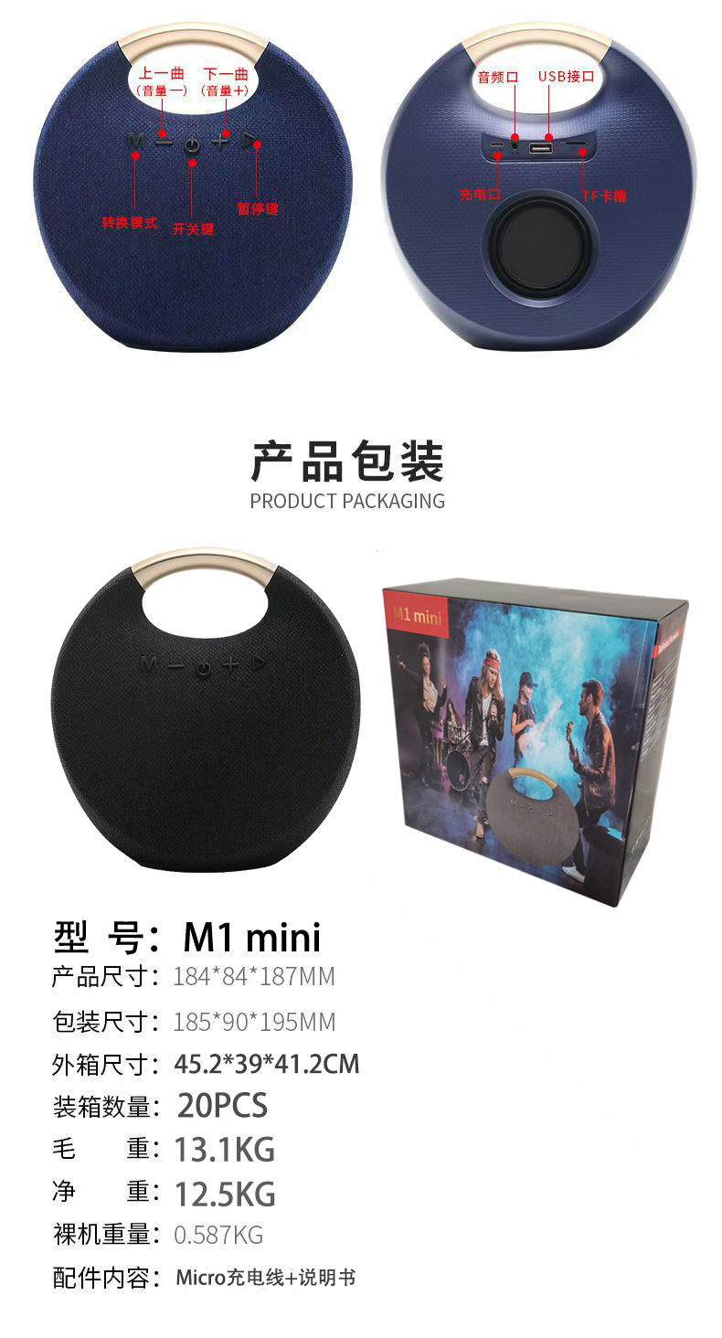4,装箱清单:音箱+充电线+说明书