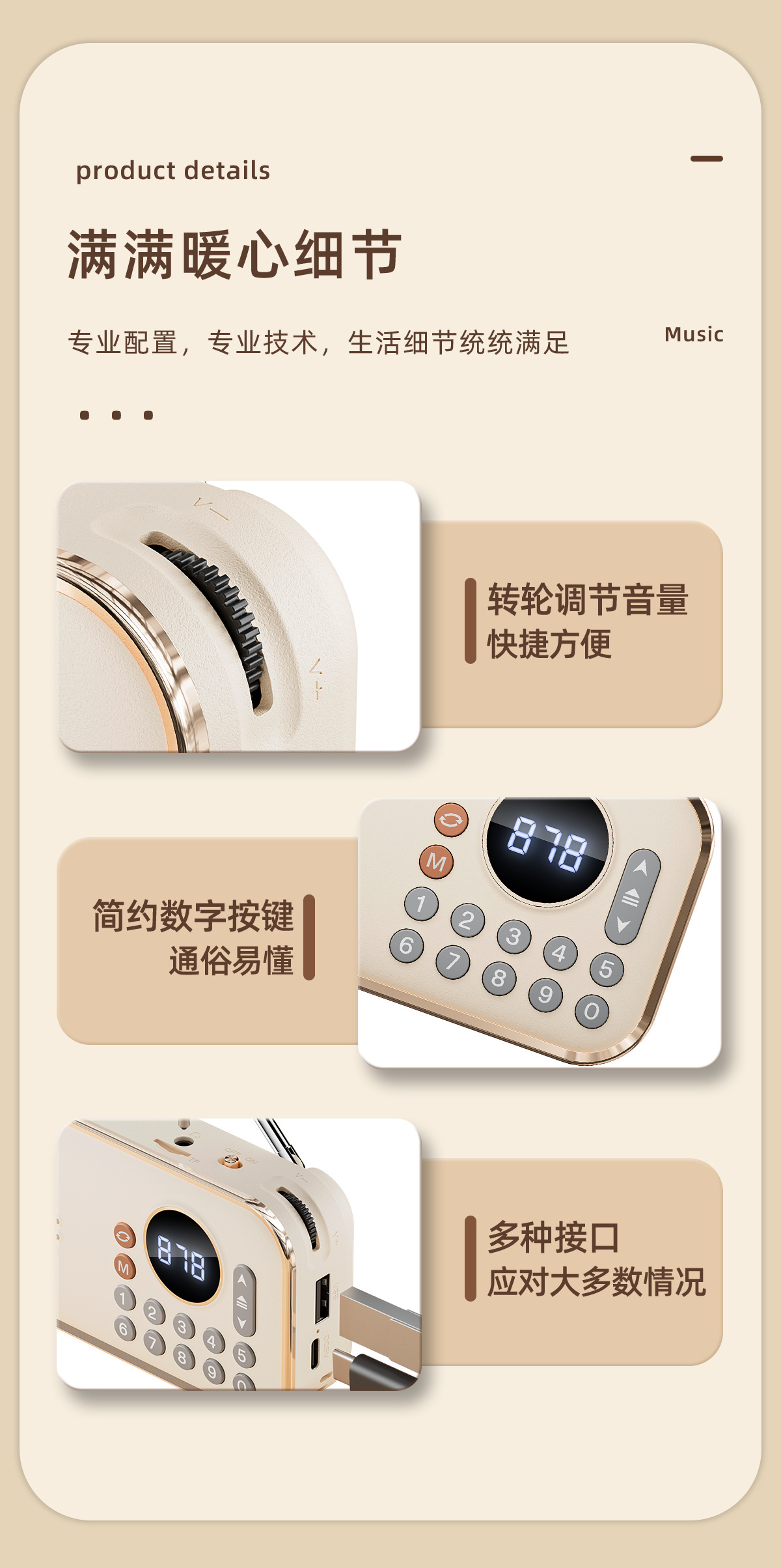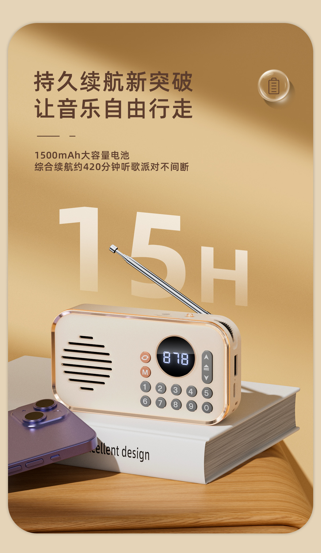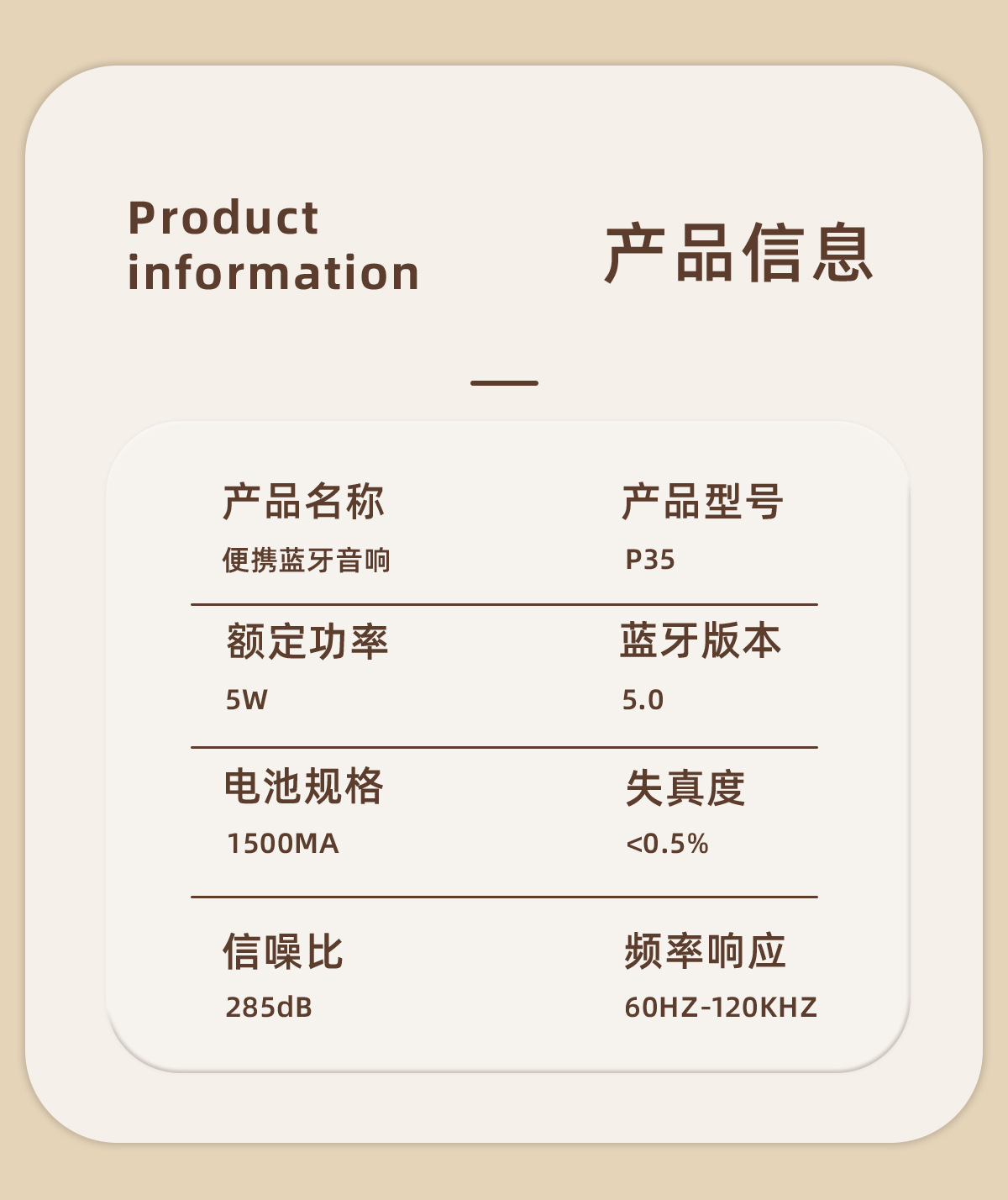 商品属性 [上市时间] 2023-12 [主要下游平台] ebay,亚马逊,wish,速卖通,独立站,LAZADA [主要销售地区] 非洲,韩国,欧洲,中东,其他 [产品净重] 215g [信噪比] ≥100dB [内置蓄电池容量] 1200mAh-2000mAh(含) [功能] 收音机、插卡、插U盘 [售后服务] 店铺三包 [喇叭数] 1 [是否专利货源] 否 [是否内置电池] 内置电池 [是否外贸] 否 [是否跨境出口专供货源] 是 [有效距离] 10米 [毛重] 222g [电源方式] USB [箱体材质] ABS+电镀 [蓝牙版本] 5.0 [连接方式] 蓝牙连接 [适用场景] 桌面,户外,居家,移动便携,广播系统 [防水等级] 不防水 [附加功能] 插卡,语音提示 [音箱箱体材质] ABS+电镀 [频响范围] 100HZ-20KHZ [额定功率] 5 [额定电压] 3.7