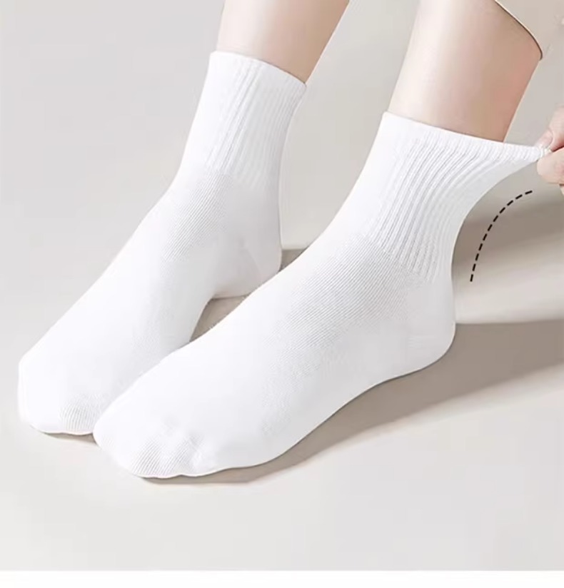 商品属性 [上市年份/季节] 2024春季 [上市时间] 2023年春季 [主面料成分] 聚酯纤维(涤纶) [主面料成分含量] 80%(含)-90%(不含) [产品类别] 普通休闲袜 [产地] 诸暨 [功能] 防滑,吸汗,防臭,防摩擦 [包装形式] 袋装 [图案] 纯色 [成分及含量] 80 [无骨缝制] 否:机器缝头 [是否跨境出口专供货源] 否 [是否进口] 否 [筒高] 中筒 [织造方法] 单针 [适合季节] 夏季,冬季,春季,秋季,四季通用 [适用年龄段] 青年(18-40周岁) [适用性别] 中性/男女均可 [针数] 144N [面料名称] 涤棉 [风格] 运动