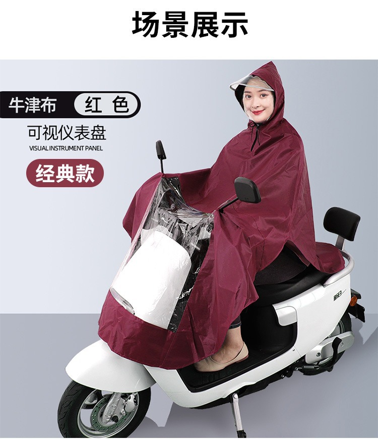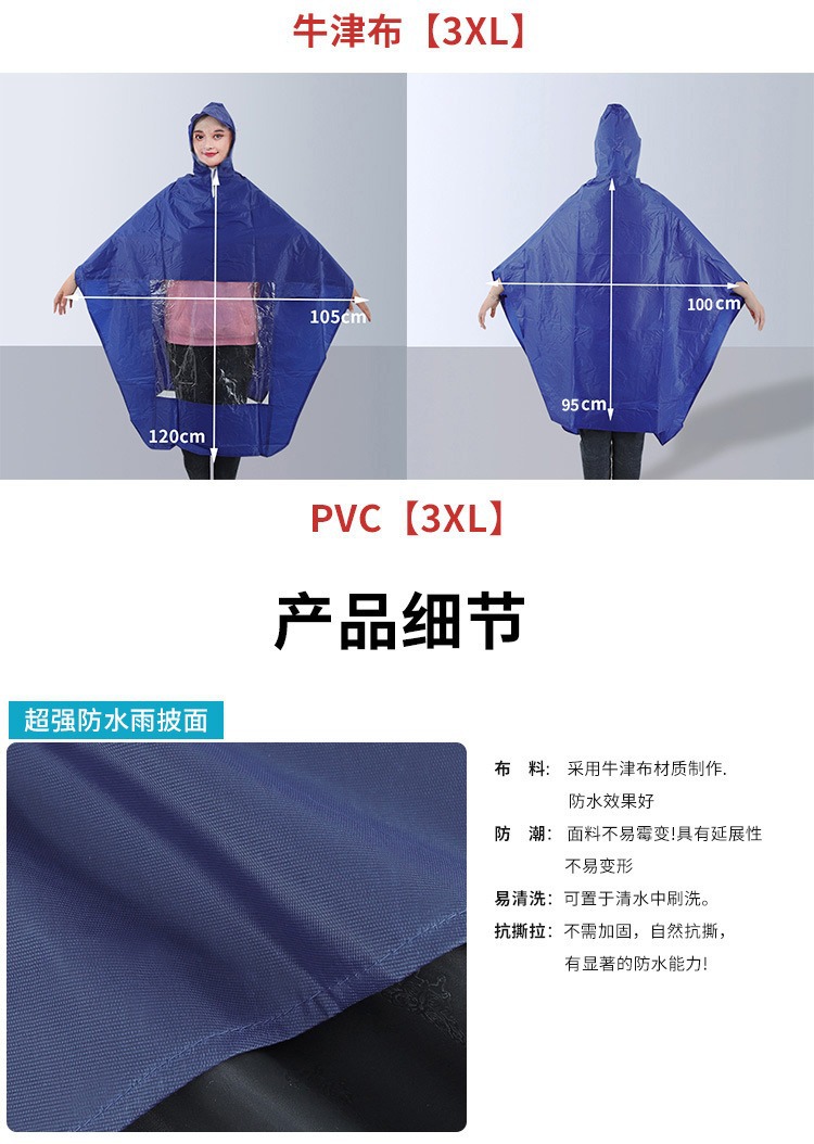 商品属性 [产地(国内)] 河南省 [加印LOGO] 可以 [加工定制] 是 [包装方式] 袋装 [布料厚度] 0.15-0.25(mm) [是否一次性] 否 [是否专利货源] 否 [是否跨境出口专供货源] 否 [是否进口] 否 [款式] 电动车/摩托车雨衣 [版权] 无 [适用人数] 1人 [适用对象] 成人 [防水胶层] PVC胶 [雨具用途] 摩托车/电瓶车雨披 [雨衣厚薄] 常规 [雨衣布料] 牛津布 [风格] 古典风格