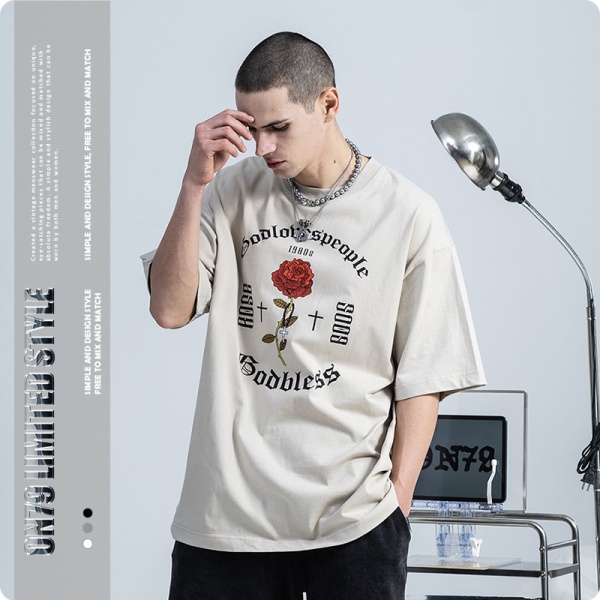 商品属性 [上市年份/季节] 2022年夏季 [主要下游平台] ebay,亚马逊,wish,速卖通,独立站,LAZADA [主要销售地区] 非洲,欧洲,南美,东南亚,北美,东北亚,中东 [主面料成分] 棉 [主面料成分的含量] 95 [克重] 180g(含)-250g(不含) [厚薄] 普通 [原创设计货源] 是 [图案] 字母 [工艺] 印花/印染 [是否库存] 否 [是否跨境出口专供货源] 是 [是否连帽] 不连帽 [有可授权的自有品牌] 是 [有无质检报告] 否 [材质功能] 透气 [款式] 套头 [款式细节] 印花 [淘货类别] 青春流行(18-24岁) [版型] 宽松型 [袖型] 常规 [袖长] 短袖 [误差范围] 2CM [货源类别] 现货 [适合人群] 青少年 [适合季节] 夏季 [适用场景] 休闲 [面料名称] 棉 [领口形状] 圆领 [领型] 无领 [风格] 国潮