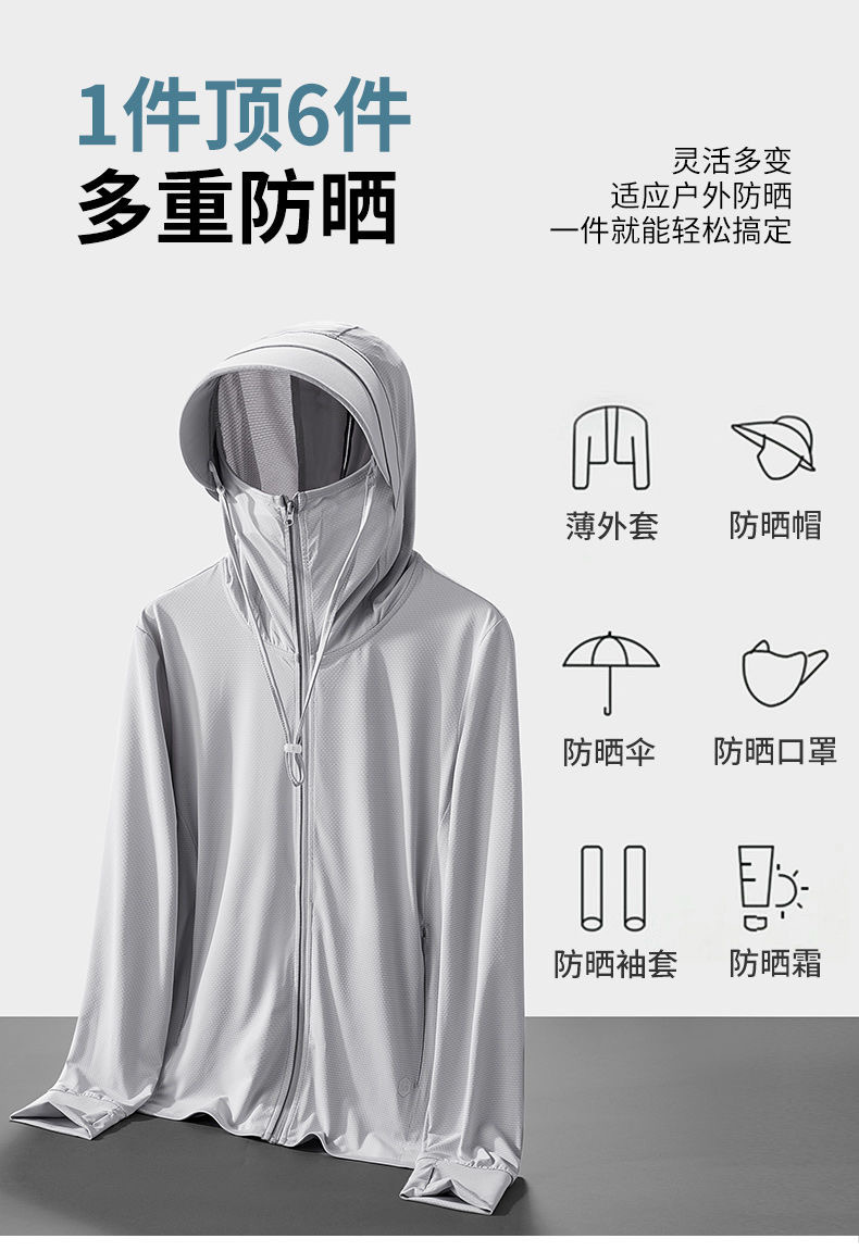 商品属性 [专利类型] 无 [产地] 广东省 [功能] 速干,透气,耐磨 [图案] 纯色 [外贸出口认证] 0 [是否可脱卸] 不可脱卸 [是否跨境出口专供货源] 是 [是否连帽] 连帽 [最快出货时间] 8-15天 [款号] F03 [紫外线防护系数] 01 [衣长] 常规 [质检报告编号] 01 [质量等级] 合格品 [适合季节] 夏季 [适用场景] 跑步运动 [适用年龄段] 成年 [适用性别] 中性/男女均可 [适用运动] 通用 [防晒系数] 81%—90% [面料] 涤纶 [主要下游平台] 速卖通,其他 [主要销售地区] 东南亚,其他 [有可授权的自有品牌] 否