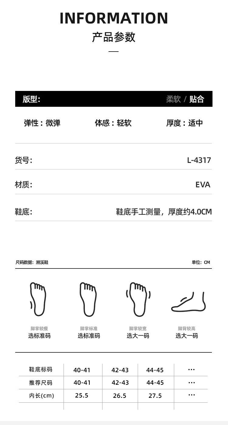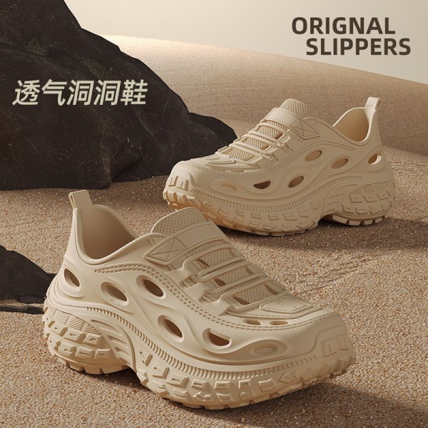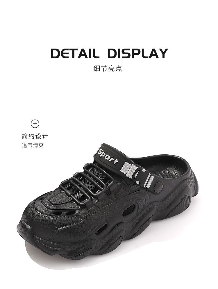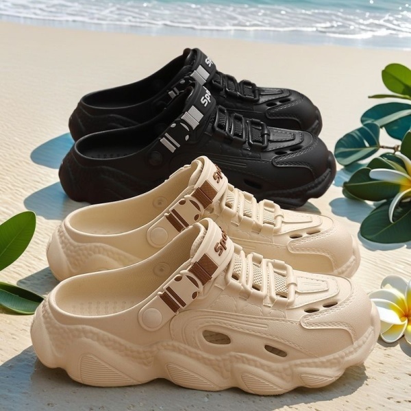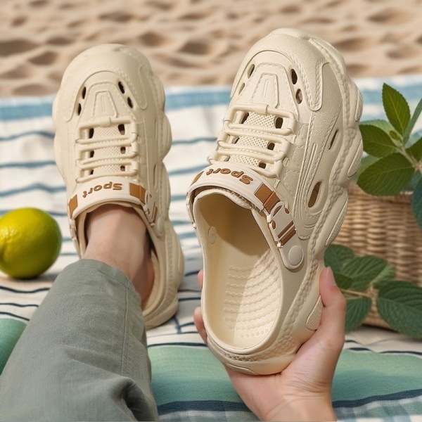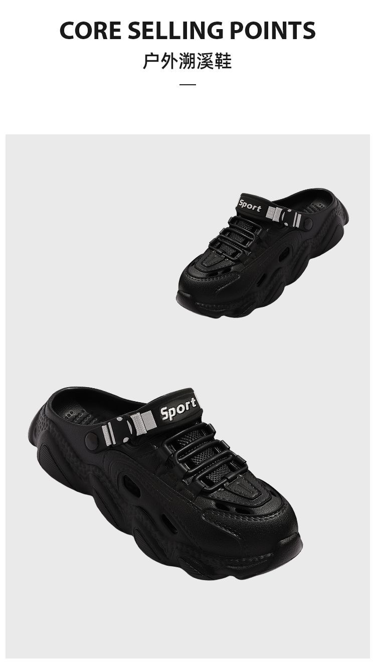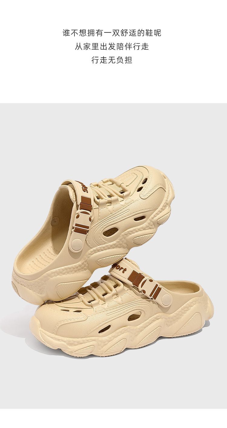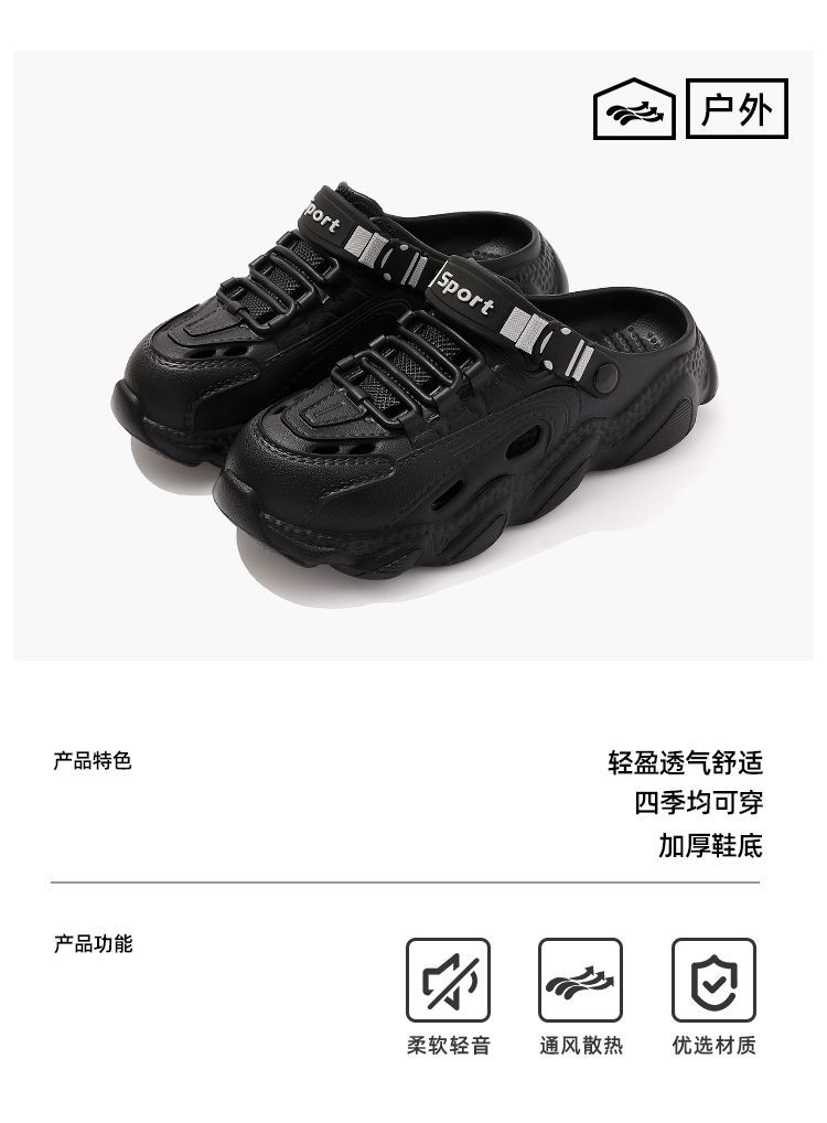 商品属性 [上市年份季节(上市时间)] 2025夏季 [主要下游平台] ebay,亚马逊,wish,速卖通,LAZADA [主要销售地区] 欧洲,南美,东南亚,北美,东北亚,中东 [内里材质] 无内里 [功能] 防水,防滑 [加工方式] 压花 [厚薄] 加厚 [图案] 纯色 [外贸类型] 出口 [库存类型] 整单 [是否外贸] 是 [是否库存] 否 [最快出货时间] 1-3天 [最晚发货时间] 2天 [有可授权的自有品牌] 是 [毛重] 0.4 [流行元素] 洞洞款 [穿着方式] 松紧带 [筒高] 低筒 [货源类别] 现货 [适合季节] 夏季 [适用年龄段] 成年 [鞋头形状] 包头 [鞋底工艺] 注压 [鞋底材质] EVA [鞋跟形状] 平跟厚底 [鞋跟高度] 3-5 [鞋面材质] 户外机能 [风格] 休闲