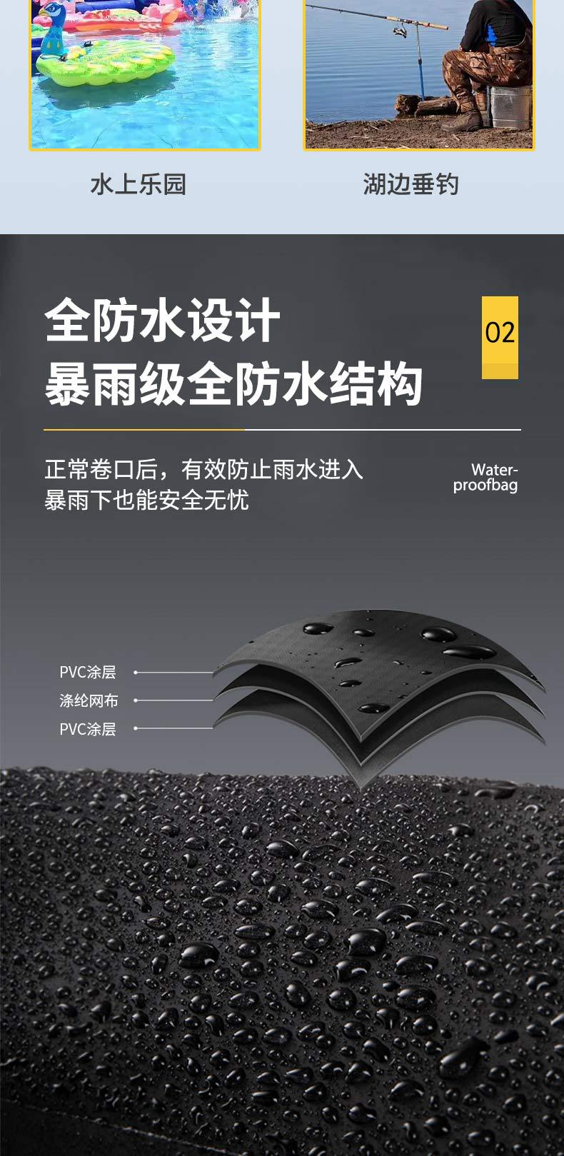 商品属性 [专利类型] 无 [主要下游平台] ebay,亚马逊,wish,速卖通 [主要销售地区] 非洲,欧洲,南美,东南亚,北美,东北亚,中东,其他 [产品类别] 防水袋 [外贸出口认证] 无 [是否跨境出口专供货源] 是 [有可授权的自有品牌] 否 [材质] 环保PVC夹网布 [质检报告编号] 无