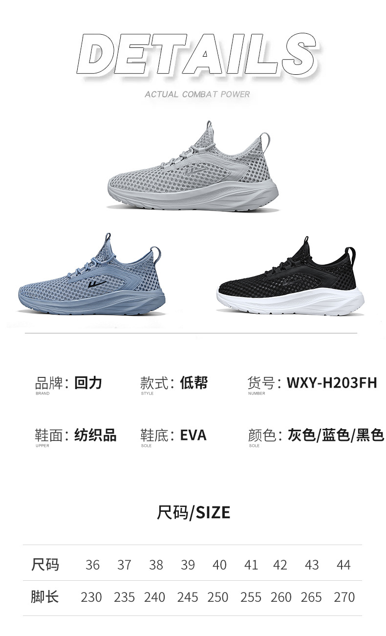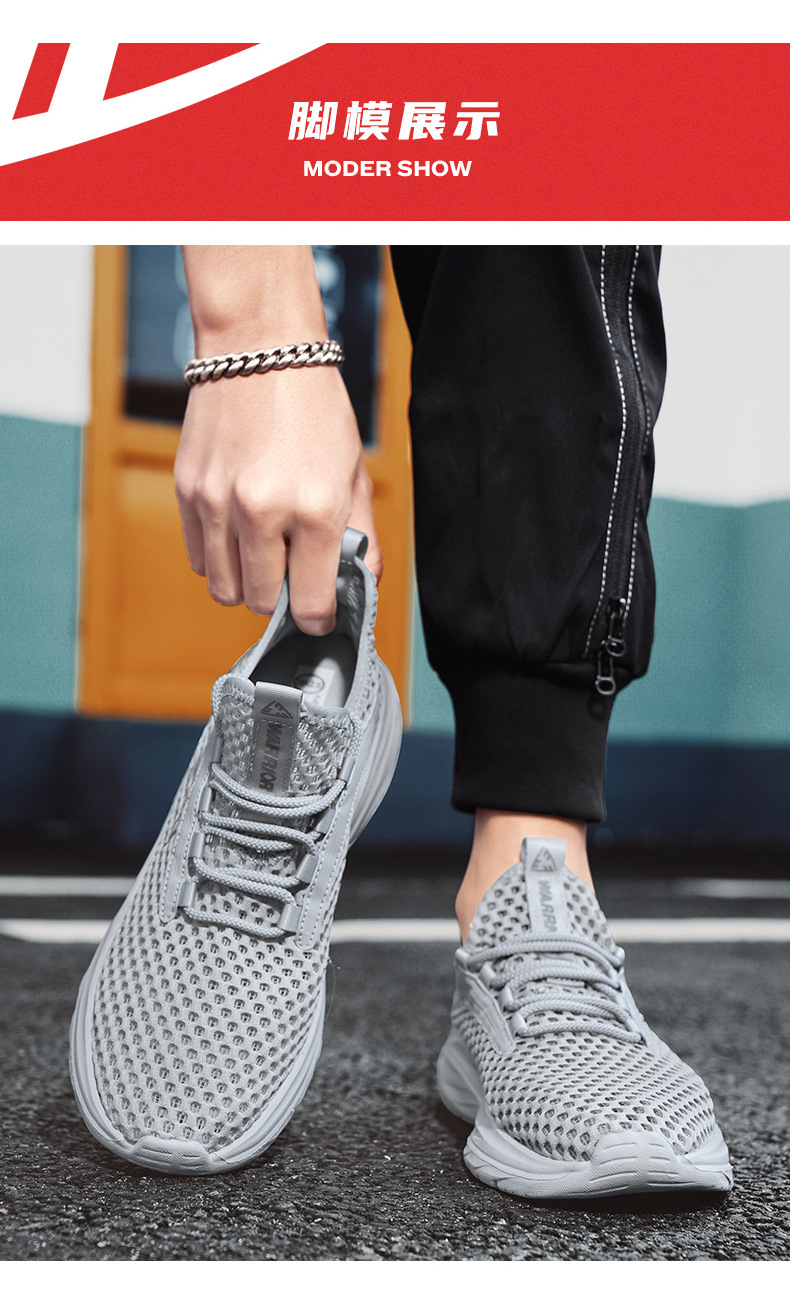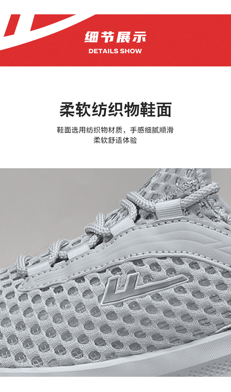 商品属性 [上市年份季节(上市时间)] 2024年夏季 [产品类别] 溯溪鞋 [产地] 福建泉州 [功能] 速干,透气,轻便,防滑,耐磨 [图案] 纯色 [最快出货时间] 3 [最晚发货时间] 8-15天 [款式] 网面鞋 [流行元素] 镂空,车缝线 [穿着方式] 前系带 [货源类别] 现货 [适合季节] 夏季 [适用场景] 运动 [适用年龄段] 成年 [适用性别] 男 [适用运动] 通用 [鞋垫材质] 织物 [鞋头形状] 圆头 [鞋帮高度] 低帮 [鞋底材质] EVA [鞋跟形状] 平跟 [鞋跟高度] 低跟(1-3CM) [鞋面材质] 纺织品 [风格] 简约