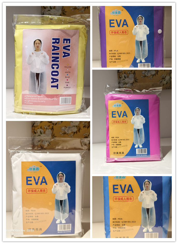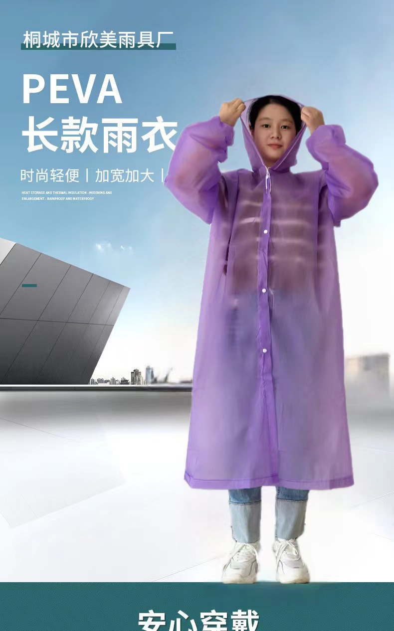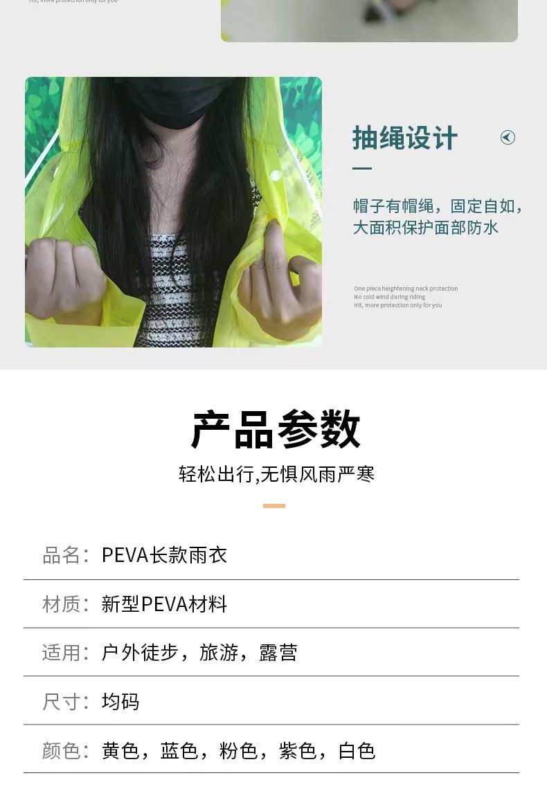 商品属性 [产地(国内)] 安徽省 [加印LOGO] 可以 [加工定制] 是 [包装体积] 1140 [包装方式] 袋装 [商品条形码] 6974813070397 [布料厚度] 140克 [是否一次性] 否 [是否专利货源] 否 [是否跨境出口专供货源] 否 [是否进口] 否 [款式] 连体雨衣 [毛重] 150 [版权] 无 [适用人数] 1人 [适用对象] 成人 [防水胶层] 无 [雨具用途] 徒步雨披 [雨衣厚薄] 厚款 [雨衣布料] EVA [风格] 简约