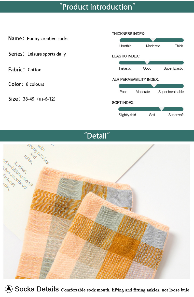 商品属性 [上市年份/季节] 2024年夏季 [上市时间] 2024年春季 [主面料成分] 棉 [主面料成分含量] 50%(含)-70%(不含) [产品类别] 普通休闲袜 [产地] 诸暨 [功能] 防滑,吸汗,防臭,防摩擦 [包装形式] 袋装 [图案] 植物花卉 [成分及含量] 50-70 [无骨缝制] 否:机器缝头 [是否跨境出口专供货源] 是 [是否进口] 否 [筒高] 中筒 [织造方法] 单针 [适合季节] 夏季,冬季,春季,秋季,四季通用 [适用年龄段] 青年(18-40周岁) [适用性别] 中性/男女均可 [针数] 168N [面料名称] 棉 [风格] 休闲