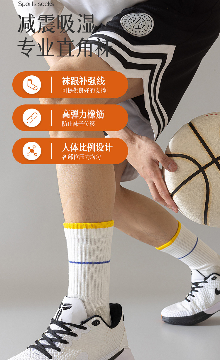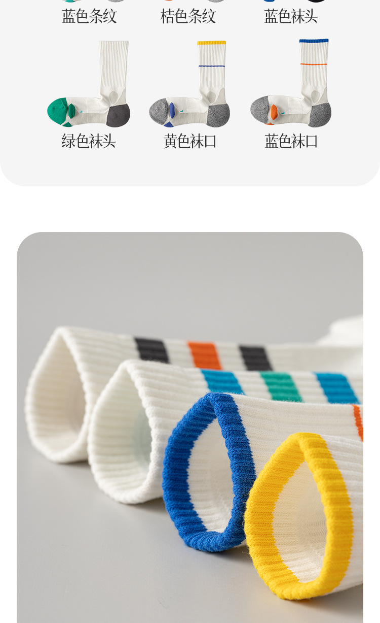 商品属性 [上市年份/季节] 2024年夏季 [上市时间] 2024年夏季 [主面料成分] 棉 [主面料成分含量] 90%(含)-95%(不含) [产品类别] 普通休闲袜 [产地] 诸暨 [功能] 防滑,抗菌,吸汗,防臭 [包装形式] 无包装 [图案] 拼色 [成分及含量] 90 [无骨缝制] 否:机器缝头 [是否跨境出口专供货源] 是 [是否进口] 否 [筒高] 高筒 [织造方法] 双针 [适合季节] 夏季,冬季,春季,秋季,四季通用 [适用年龄段] 青年(18-40周岁) [适用性别] 男 [针数] 200N [面料名称] 棉 [风格] 运动