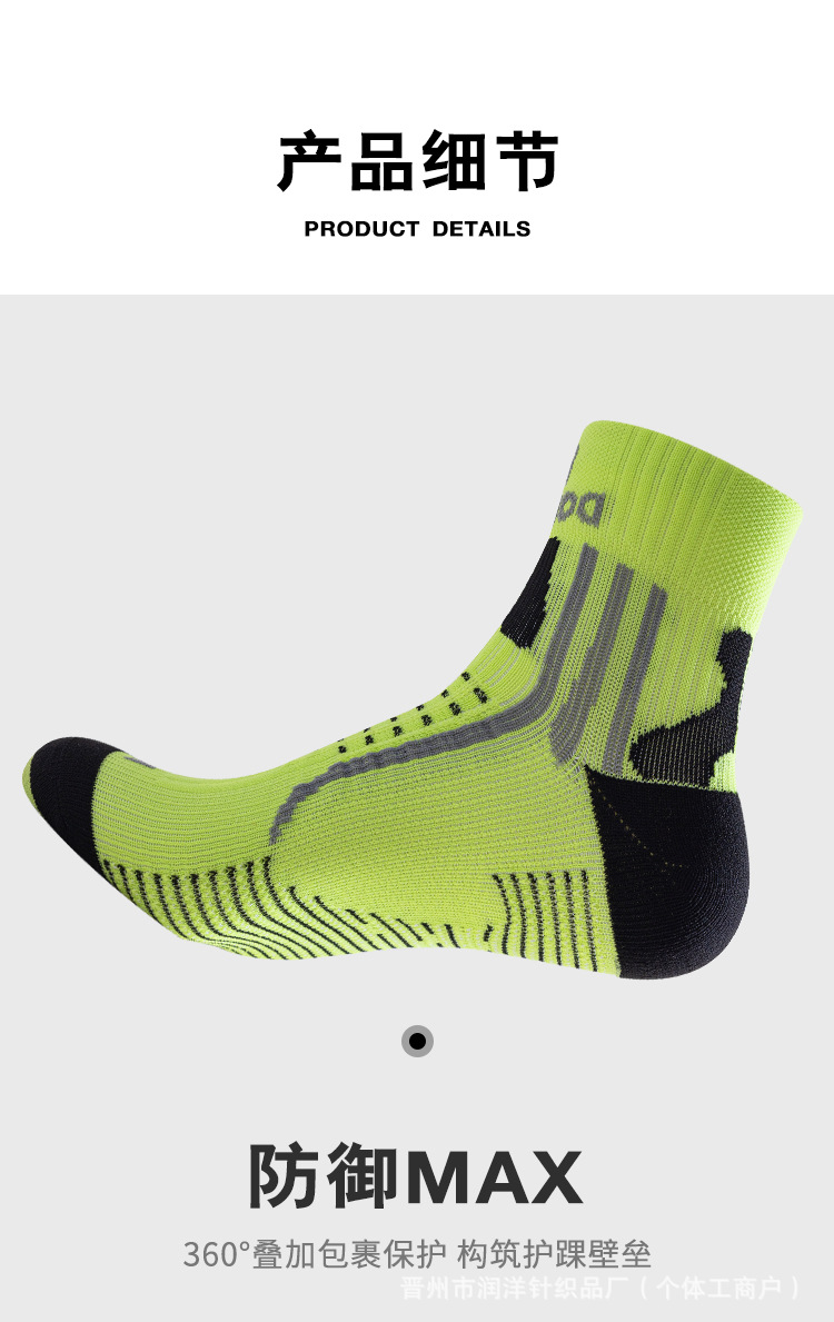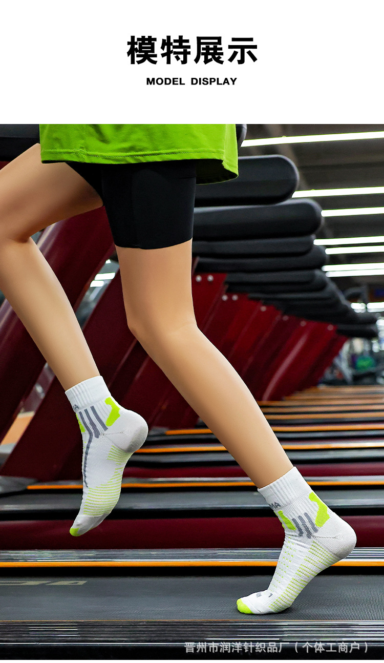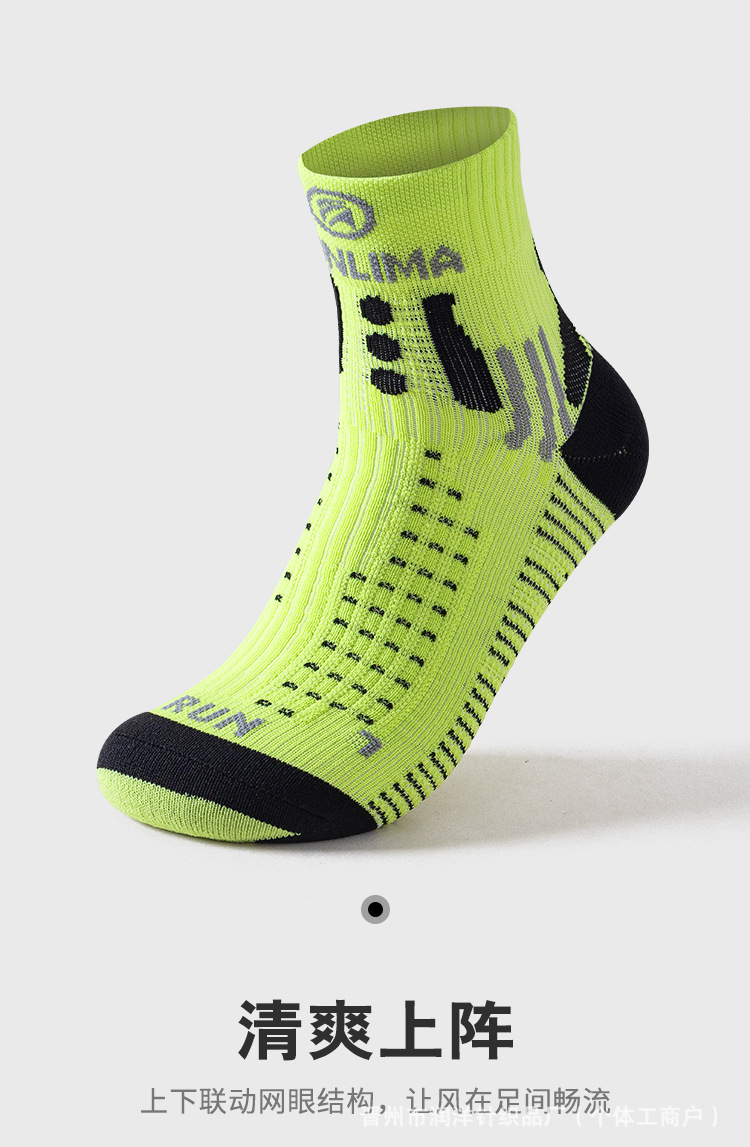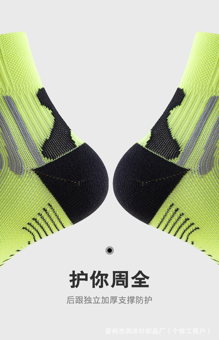 商品属性 [上市年份/季节] 2024春季 [上市时间] 2023年春季 [产品类别] 专业运动袜 [功能] 防滑,吸汗 [包装形式] 袋装 [图案] 拼色 [成分及含量] 聚酯纤维 [无骨缝制] 否:机器缝头 [是否跨境出口专供货源] 是 [筒高] 短筒 [织造方法] 单针 [适合季节] 四季通用 [适用场景] 跑步 [适用年龄段] 青年(18-40周岁),中年(40-60周岁),老年(60周岁以上) [适用性别] 中性/男女均可 [针数] 144N [风格] 运动