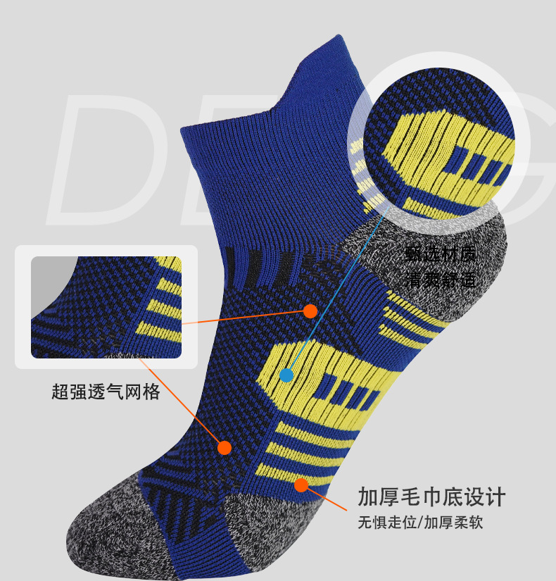 商品属性 [上市年份/季节] 2025年春季 [上市时间] 2023年夏季 [主面料成分] 锦纶 [主面料成分含量] 50%(含)-70%(不含) [产品类别] 专业运动袜 [产地] 佛山 [功能] 防滑,吸汗,防臭,防摩擦 [包装形式] 袋装 [图案] 拼色 [成分及含量] 60 [无骨缝制] 否:机器缝头 [是否跨境出口专供货源] 否 [是否进口] 否 [筒高] 短筒 [织造方法] 单针 [适合季节] 夏季,冬季,春季,秋季,四季通用 [适用场景] 跑步 [适用年龄段] 青年(18-40周岁) [适用性别] 男 [针数] 144N [面料名称] 尼龙 [风格] 运动