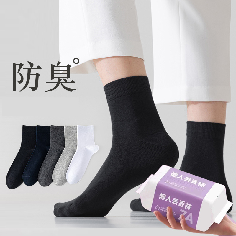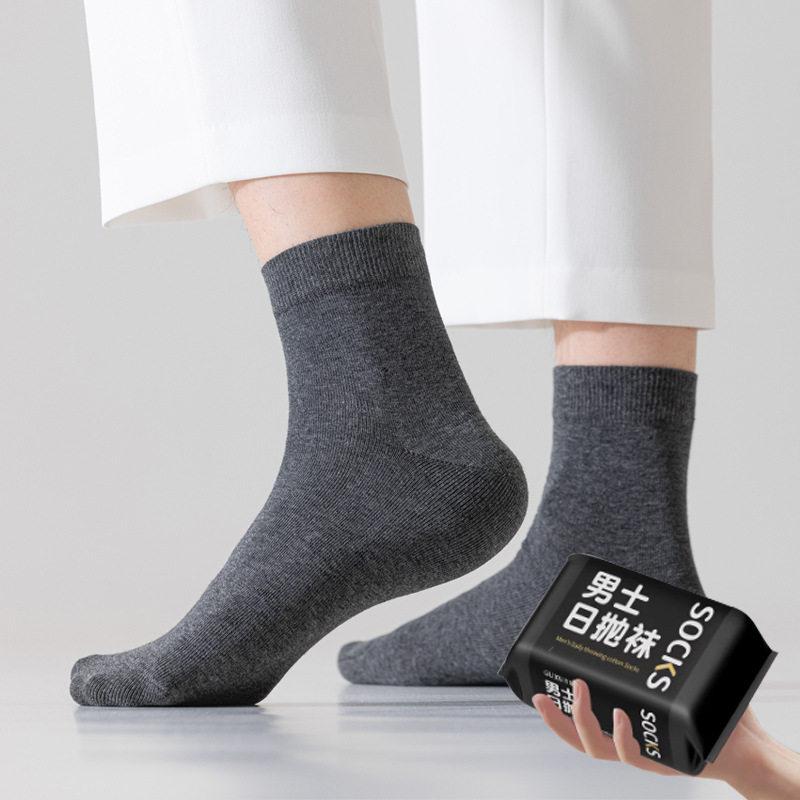 商品属性 [上市年份/季节] 2025年春季 [上市时间] 2025年春季 [主面料成分] 棉 [主面料成分含量] 50%(含)-70%(不含) [产品类别] 普通休闲袜 [产地] 诸暨 [功能] 吸汗,防臭 [图案] 纯色 [成分及含量] 65 [无骨缝制] 否:机器缝头 [是否跨境出口专供货源] 否 [是否进口] 否 [筒高] 中筒 [织造方法] 单针 [适合季节] 夏季,冬季,春季,秋季,四季通用 [适用年龄段] 青年(18-40周岁),中年(40-60周岁),少年(13-18周岁) [适用性别] 中性/男女均可 [针数] 200N [面料名称] 棉 [风格] 简约