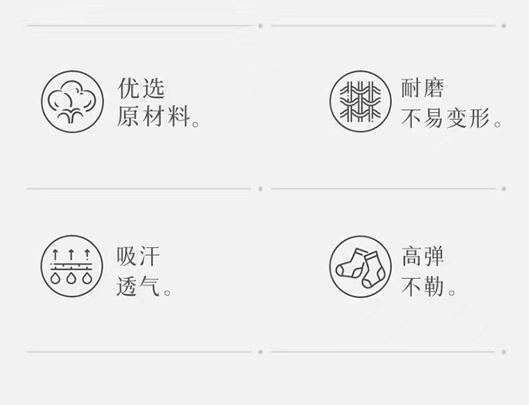 商品属性 [上市年份/季节] 2024年夏季 [上市时间] 2024年夏季 [主面料成分] 棉 [主面料成分含量] 50%(含)-70%(不含) [产品类别] 普通休闲袜 [产地] 诸暨 [功能] 吸汗 [包装形式] 袋装 [图案] 纯色 [成分及含量] 70 [无骨缝制] 是:手工无骨缝头 [是否跨境出口专供货源] 否 [是否进口] 否 [筒高] 中筒 [织造方法] 单针 [适合季节] 夏季,冬季,春季,秋季 [适用年龄段] 青年(18-40周岁),中年(40-60周岁),老年(60周岁以上) [适用性别] 中性/男女均可 [针数] 200N [面料名称] 棉 [风格] 运动