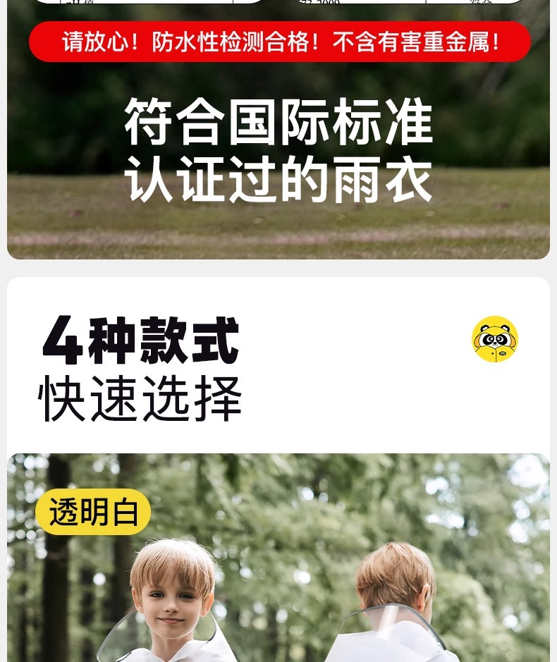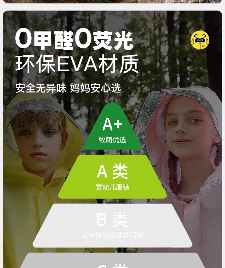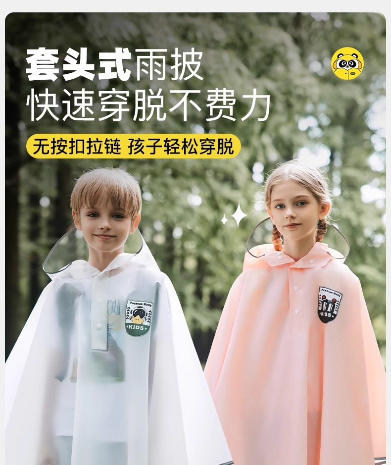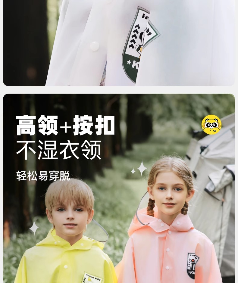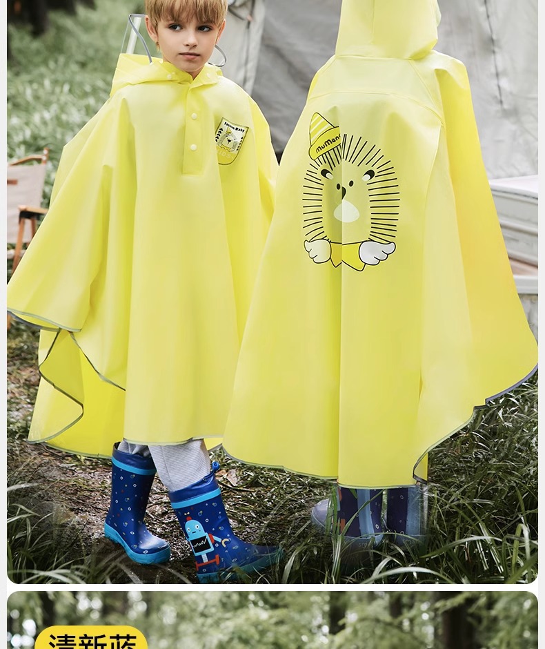 商品属性 [主要下游平台] ebay,亚马逊,wish,速卖通,独立站,LAZADA [主要销售地区] 非洲,欧洲,南美,东南亚,北美,东北亚,中东 [产地(国内)] 浙江省 [加印LOGO] 可以 [加工定制] 是 [包装方式] 袋装 [布料厚度] 16丝 [是否一次性] 否 [是否专利货源] 否 [是否跨境出口专供货源] 是 [是否进口] 否 [有可授权的自有品牌] 是 [款式] 儿童雨衣 [适用人数] 1人 [适用对象] 儿童 [防水胶层] 无 [雨具用途] 徒步雨披 [雨衣厚薄] 常规 [雨衣布料] EVA [风格] 百搭