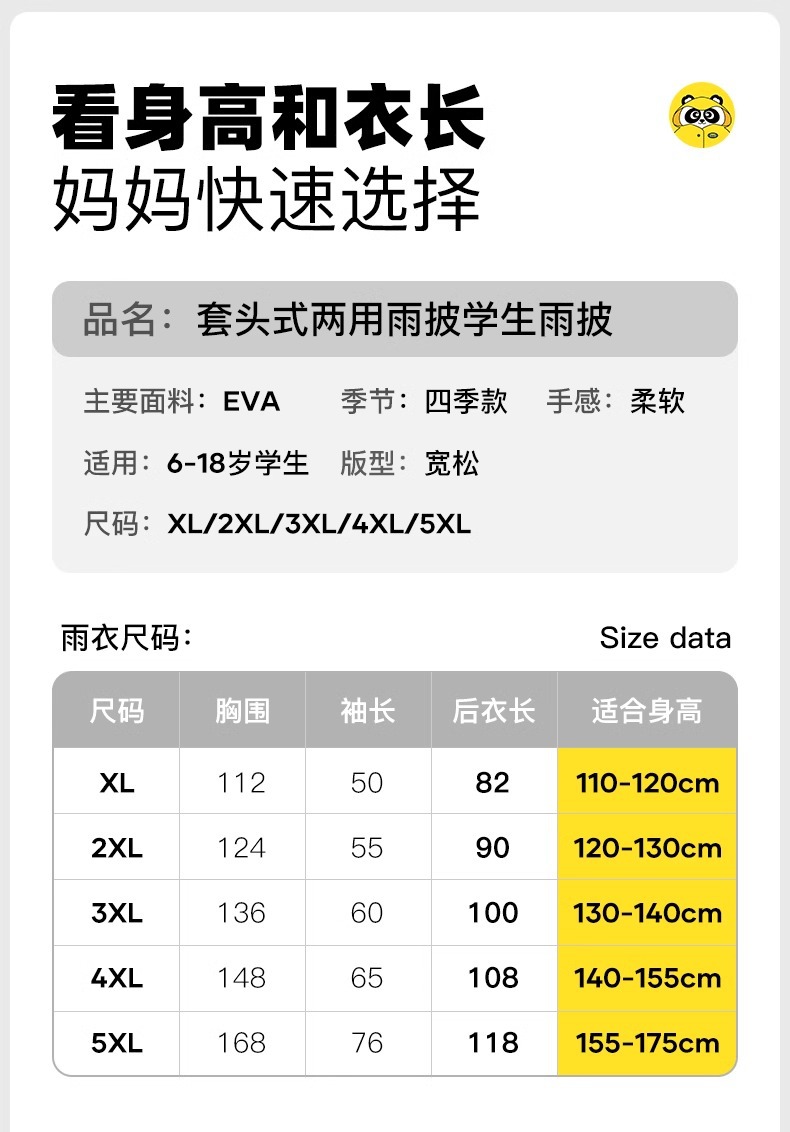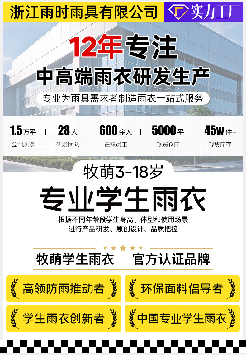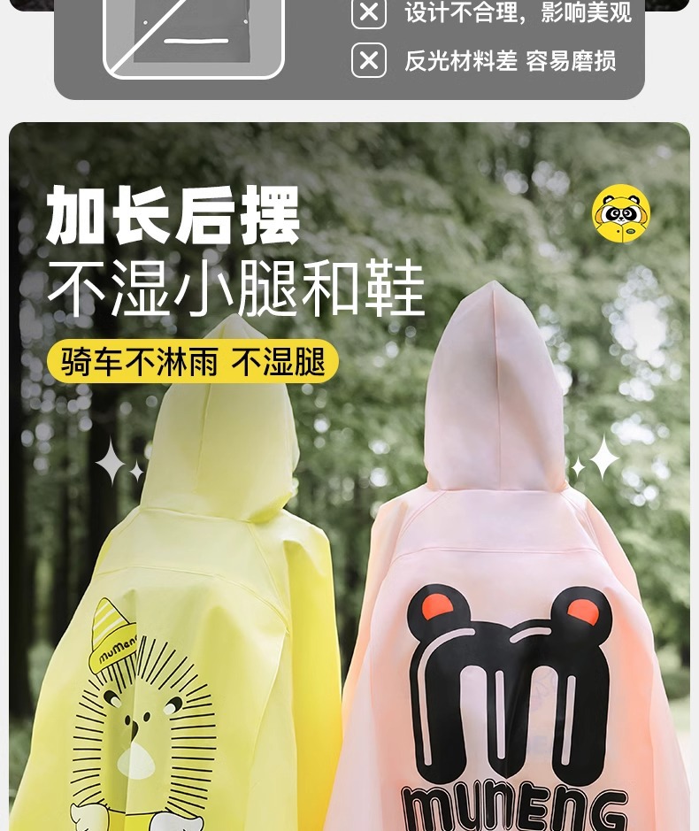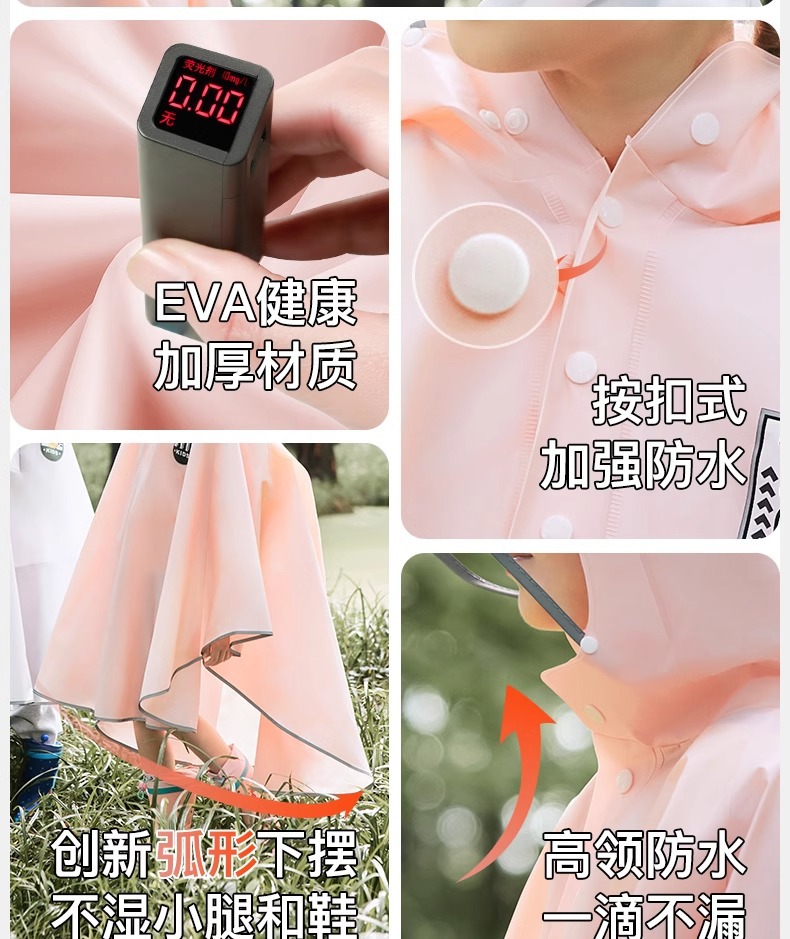 商品属性 [主要下游平台] ebay,亚马逊,wish,速卖通,独立站,LAZADA [主要销售地区] 非洲,欧洲,南美,东南亚,北美,东北亚,中东 [产地(国内)] 浙江省 [加印LOGO] 可以 [加工定制] 是 [包装方式] 袋装 [布料厚度] 16丝 [是否一次性] 否 [是否专利货源] 否 [是否跨境出口专供货源] 是 [是否进口] 否 [有可授权的自有品牌] 是 [款式] 儿童雨衣 [适用人数] 1人 [适用对象] 儿童 [防水胶层] 无 [雨具用途] 徒步雨披 [雨衣厚薄] 常规 [雨衣布料] EVA [风格] 百搭