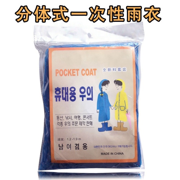 商品属性 [产地(国内)] 安徽省 [加印LOGO] 不可以 [加工定制] 是 [包装方式] 袋装 [是否一次性] 是 [是否专利货源] 否 [是否进口] 否 [款式] 一次性雨衣 [毛重] 20 [版权] 无 [适用人数] 1人 [防水胶层] 无 [雨具用途] 徒步雨披 [雨衣厚薄] 常规 [雨衣布料] 塑料 [风格] 清新