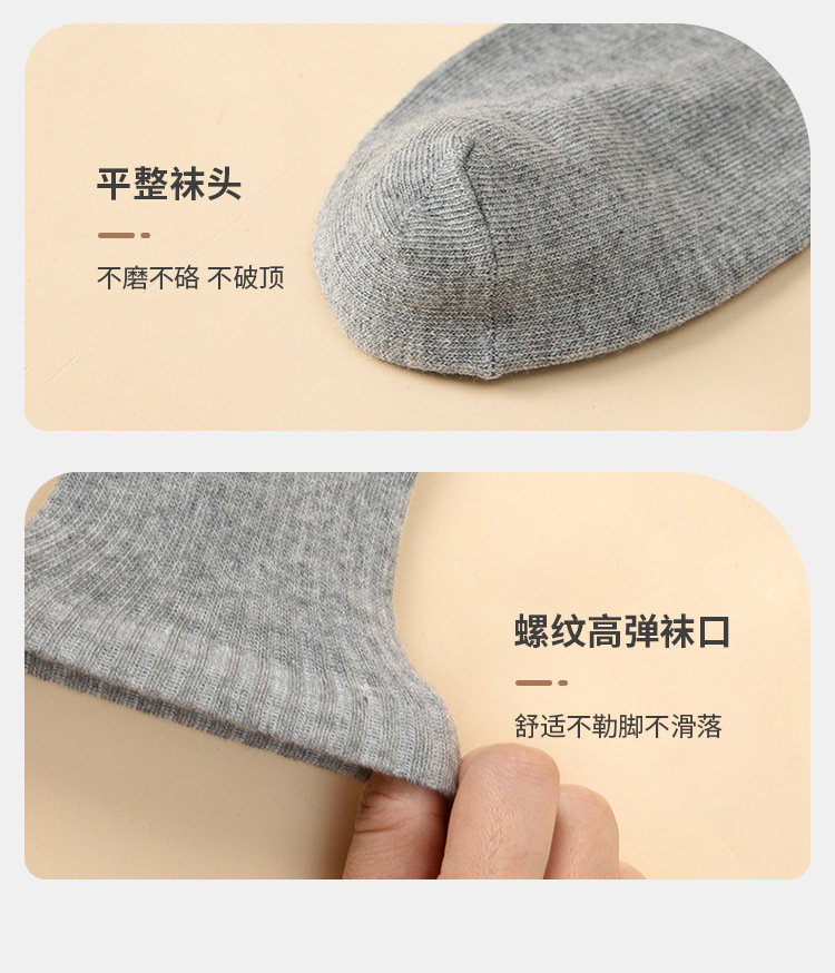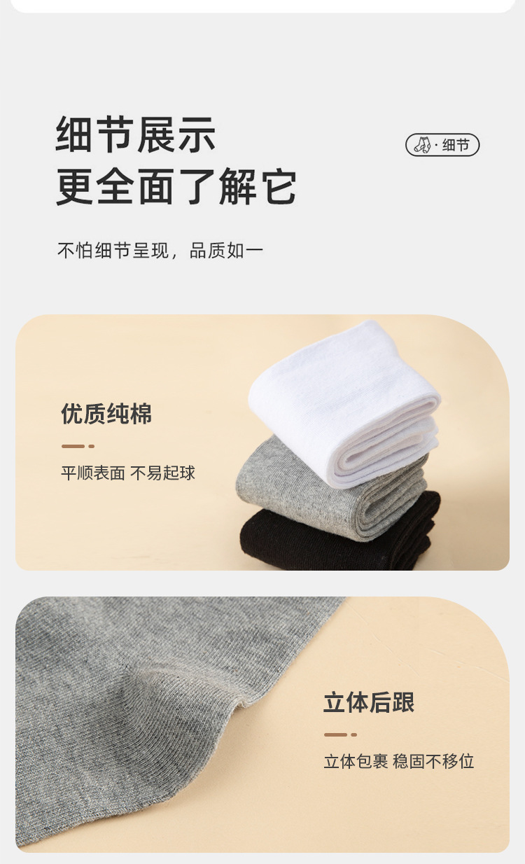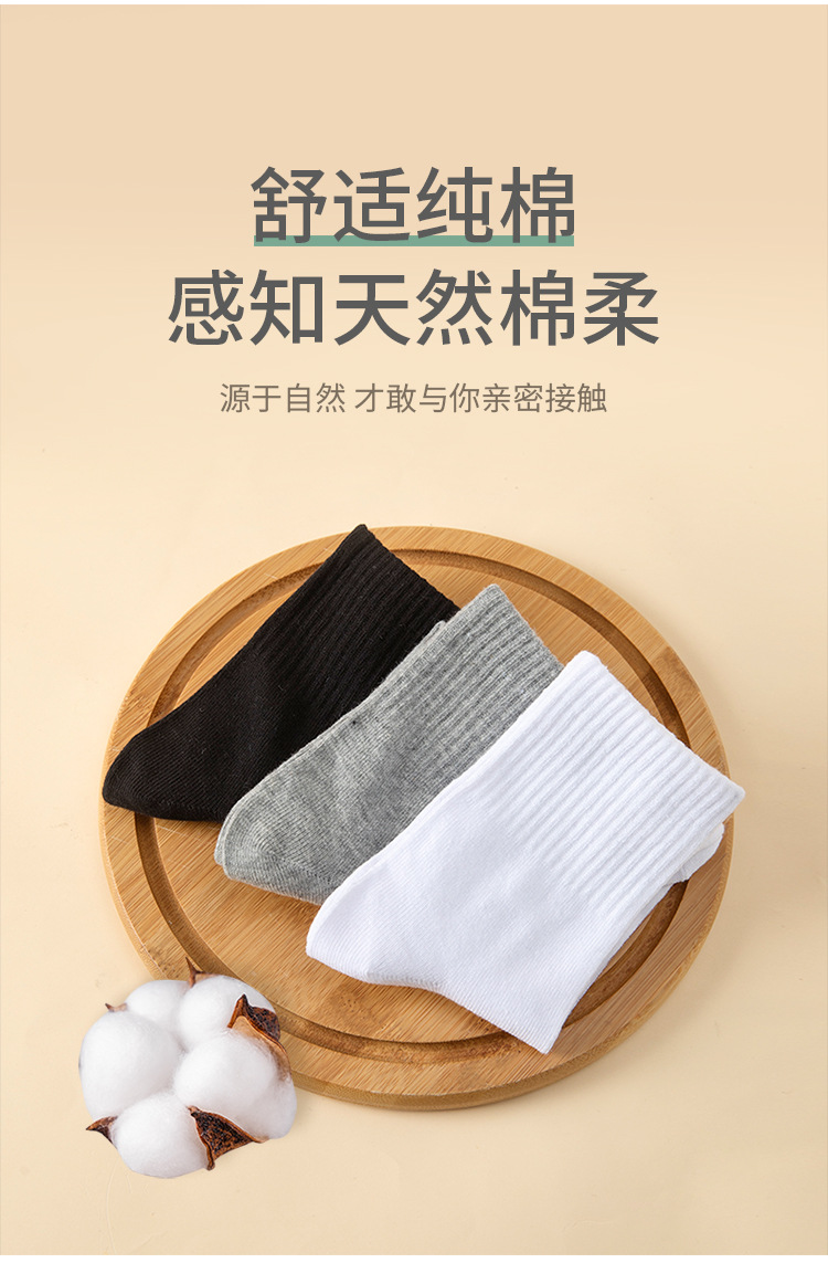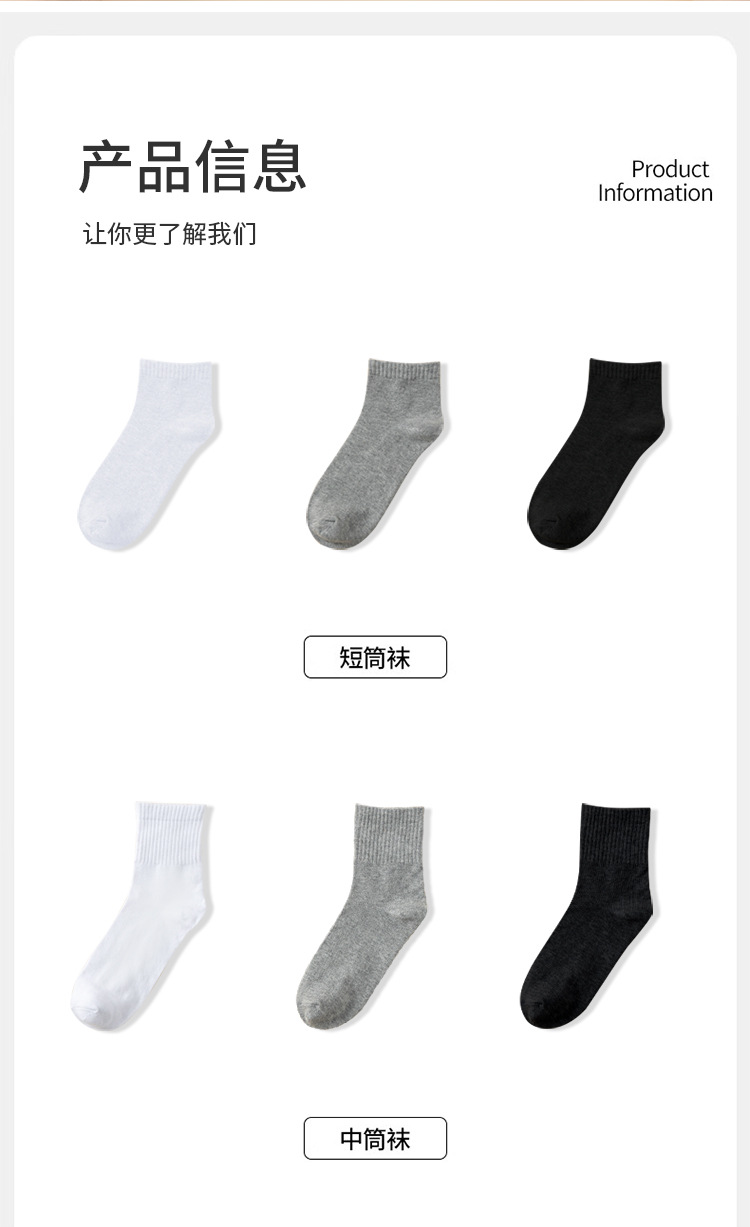 商品属性 [上市年份/季节] 2024春季 [上市时间] 2024年春季 [主面料成分] 聚酯纤维(涤纶) [主面料成分含量] 50%(含)-70%(不含) [产品类别] 普通休闲袜 [产地] 浙江 [功能] 吸汗,防臭 [图案] 纯色 [成分及含量] 50 [无骨缝制] 是:手工无骨缝头 [是否跨境出口专供货源] 是 [是否进口] 否 [筒高] 中筒 [织造方法] 双针 [适合季节] 夏季,春季,秋季,四季通用 [适用年龄段] 青年(18-40周岁) [适用性别] 中性/男女均可 [针数] 168N [面料名称] 涤棉 [风格] 运动