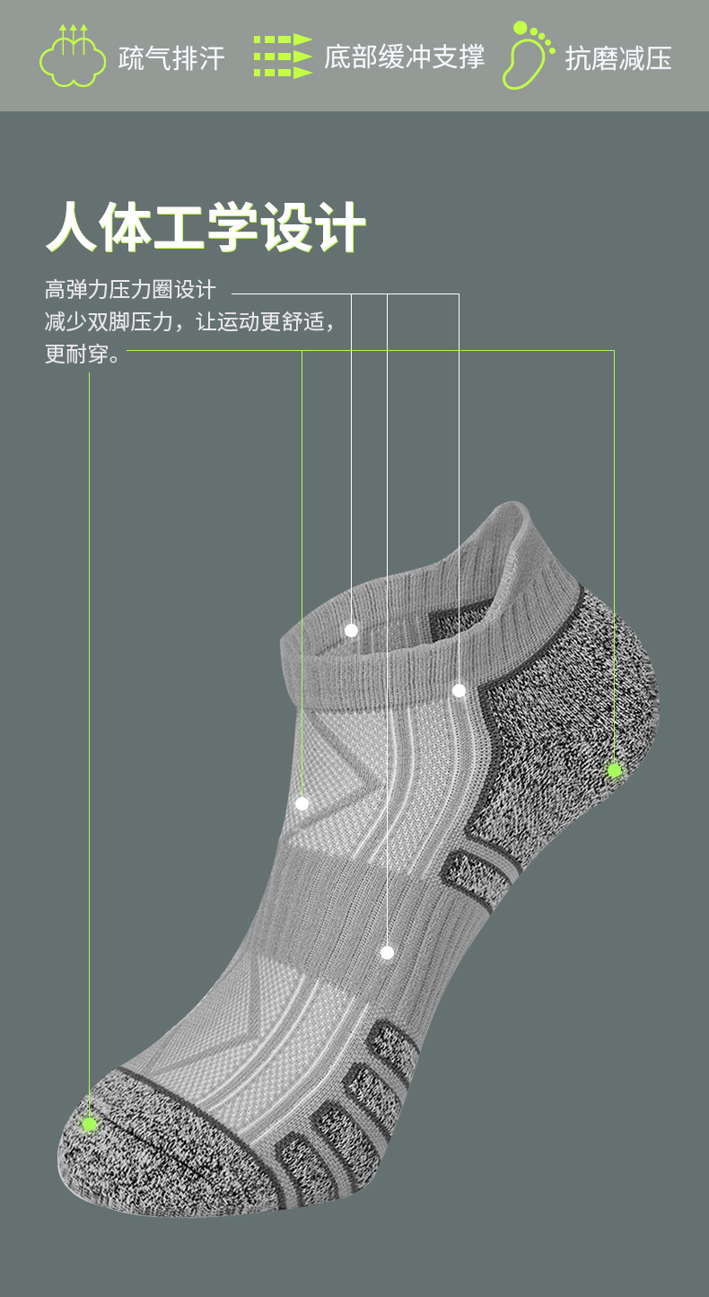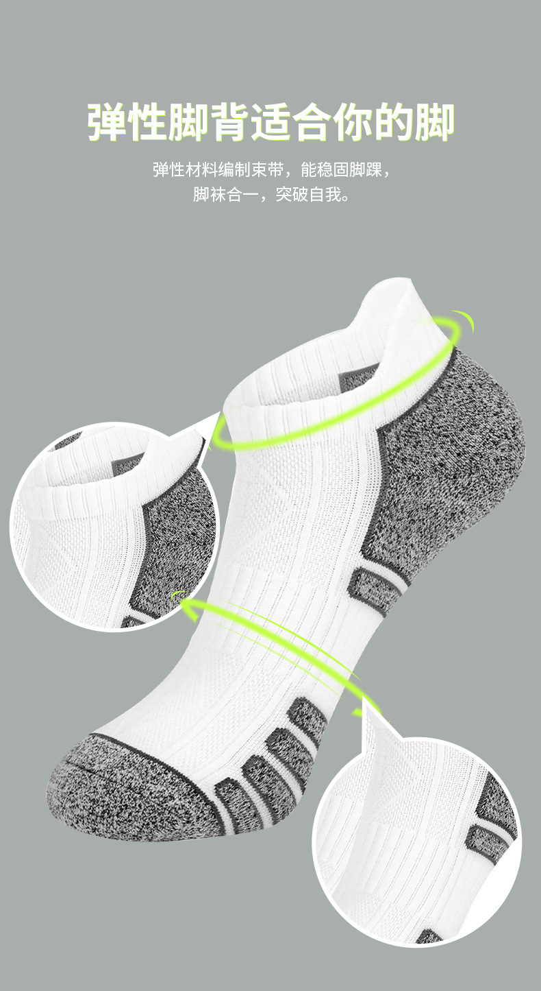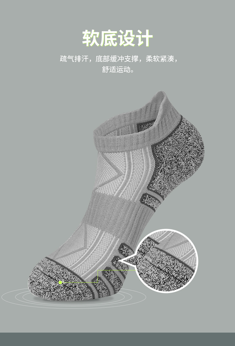 商品属性 [上市年份/季节] 2025年夏季 [上市时间] 2024年春季 [主面料成分] 锦纶 [主面料成分含量] 70%(含)-80%(不含) [产品类别] 普通休闲袜 [产地] 佛山 [功能] 吸汗 [包装形式] 袋装 [图案] 纯色 [成分及含量] 棉 [无骨缝制] 否:机器缝头 [是否跨境出口专供货源] 是 [是否进口] 否 [筒高] 短筒 [织造方法] 单针 [适合季节] 夏季,冬季,春季,秋季,四季通用 [适用年龄段] 青年(18-40周岁) [适用性别] 中性/男女均可 [针数] 176N [面料名称] 锦纶 [风格] 运动