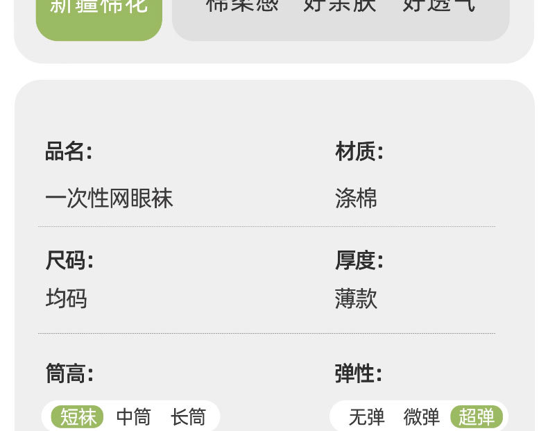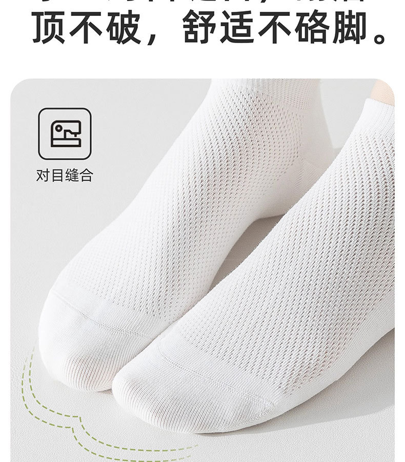 商品属性 [上市年份/季节] 2025年春季 [上市时间] 2025年春季 [主面料成分] 棉 [主面料成分含量] 90%(含)-95%(不含) [产品类别] 普通休闲袜 [产地] 诸暨 [功能] 防滑,吸汗,防臭,防摩擦 [包装形式] 袋装 [图案] 纯色 [成分及含量] 92 [无骨缝制] 是:手工无骨缝头 [是否跨境出口专供货源] 是 [是否进口] 否 [筒高] 中筒 [织造方法] 单针 [适合季节] 夏季 [适用年龄段] 青年(18-40周岁) [适用性别] 中性/男女均可 [针数] 144N [面料名称] 棉 [风格] 运动
