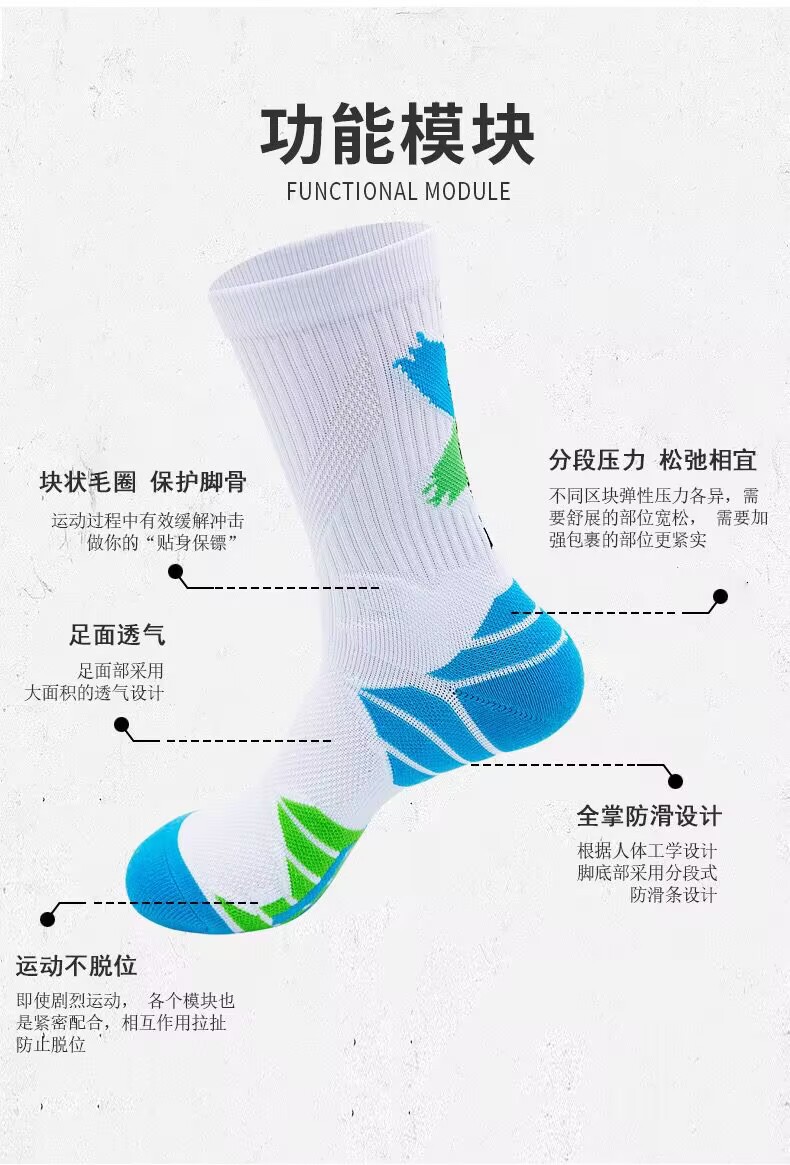 商品属性 [上市年份/季节] 2024年夏季 [上市时间] 2024年夏季 [主面料成分] 聚酯纤维(涤纶) [主面料成分含量] 30%以下 [产品类别] 专业运动袜 [产地] 诸暨 [功能] 抗菌,吸汗,防臭,防摩擦 [包装形式] 袋装 [图案] 字母/数字/文字 [成分及含量] 涤纶 [无骨缝制] 否:机器缝头 [是否跨境出口专供货源] 是 [是否进口] 否 [筒高] 高筒 [织造方法] 单针 [适合季节] 夏季,冬季,春季,秋季,四季通用 [适用场景] 篮球 [适用年龄段] 青年(18-40周岁) [适用性别] 中性/男女均可 [针数] 144N [面料名称] 涤纶 [风格] 运动