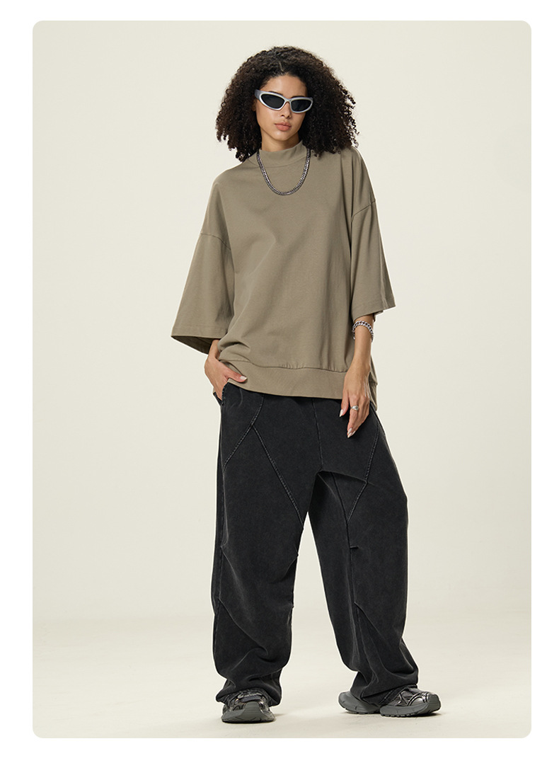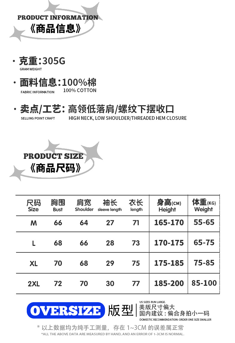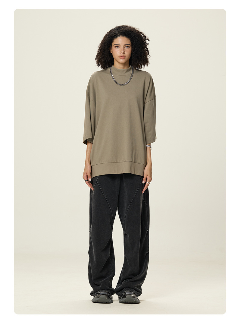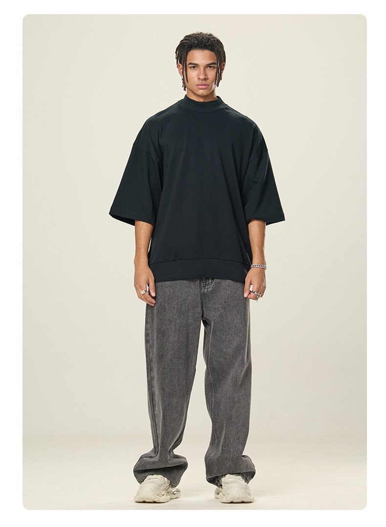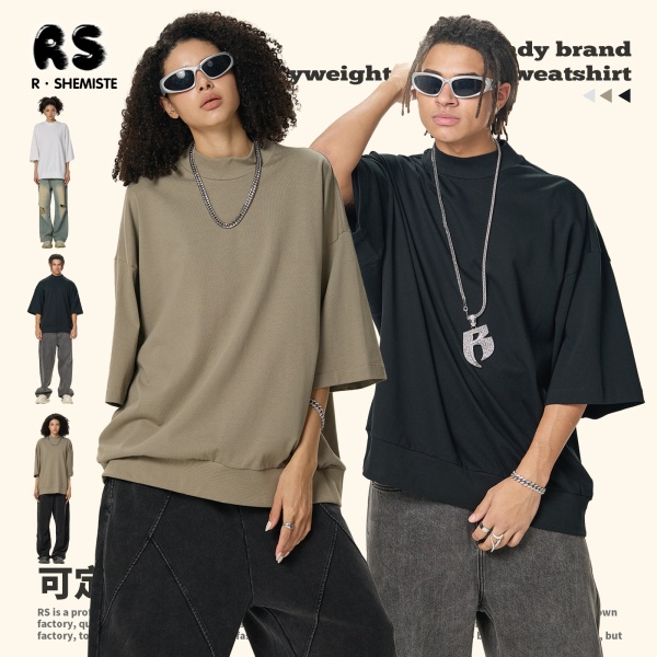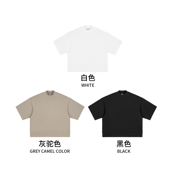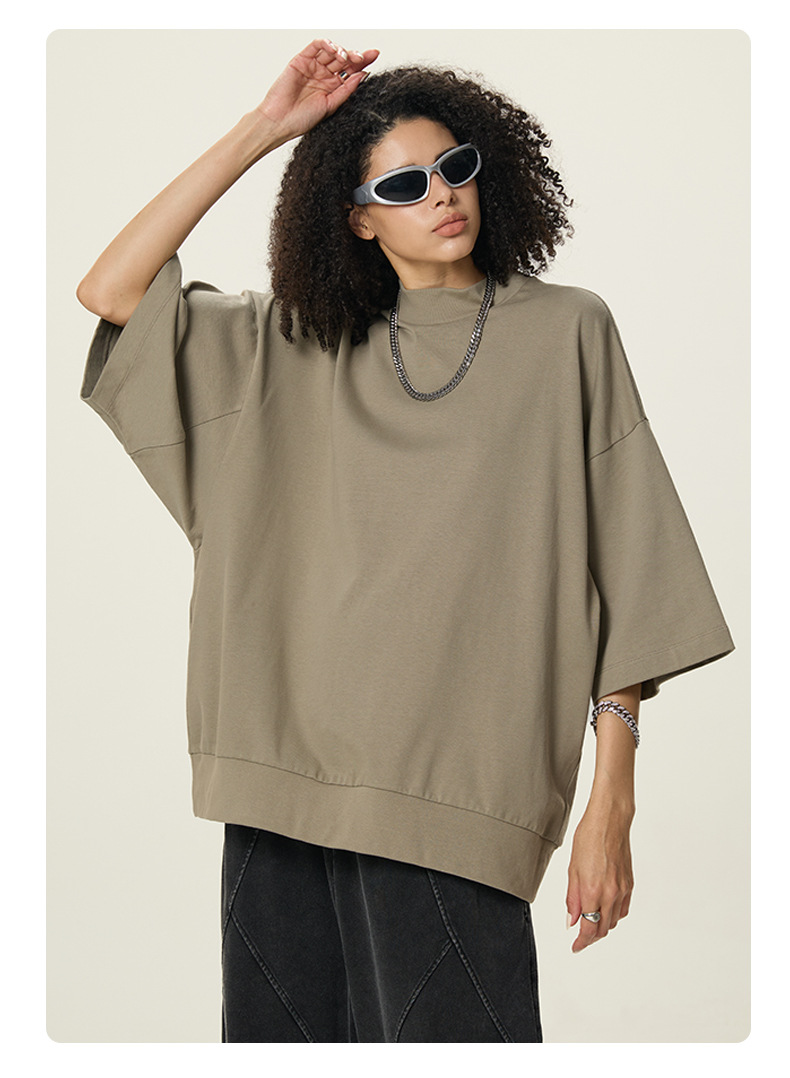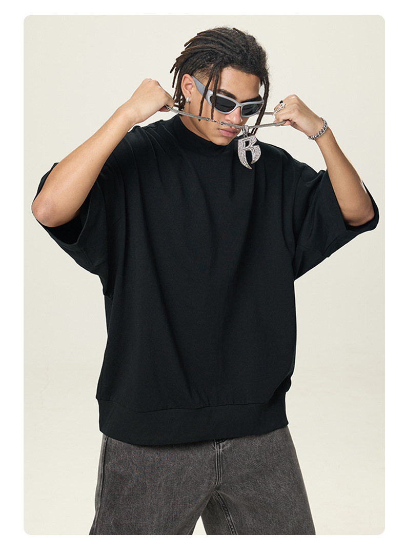 商品属性 [上市年份/季节] 2025年春季 [主要下游平台] 独立站,LAZADA,其他 [主要销售地区] 东北亚,中东,其他 [主面料成分] 棉 [主面料成分的含量] 96%及以上 [克重] 305G [厚薄] 加厚 [原创设计货源] 否 [图案] 纯色 [工艺] 无 [库存类型] 整单 [是否库存] 是 [是否跨境出口专供货源] 是 [是否连帽] 不连帽 [有无质检报告] 否 [材质功能] 其他 [款式] 套头 [款式细节] 罗纹底摆 [淘货类别] 青春流行(18-24岁) [版型] 宽松型 [袖型] 蝙蝠袖 [袖长] 五分袖/中袖 [误差范围] 1-3 [货源类别] 现货 [适合人群] 青少年 [适合季节] 夏季,春季,秋季 [适用场景] 休闲 [面料名称] 棉 [领型] 高领/堆堆领 [风格] 美式潮牌