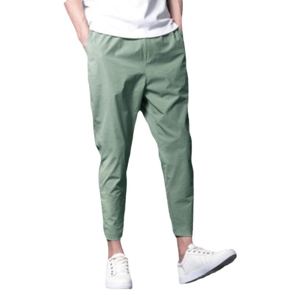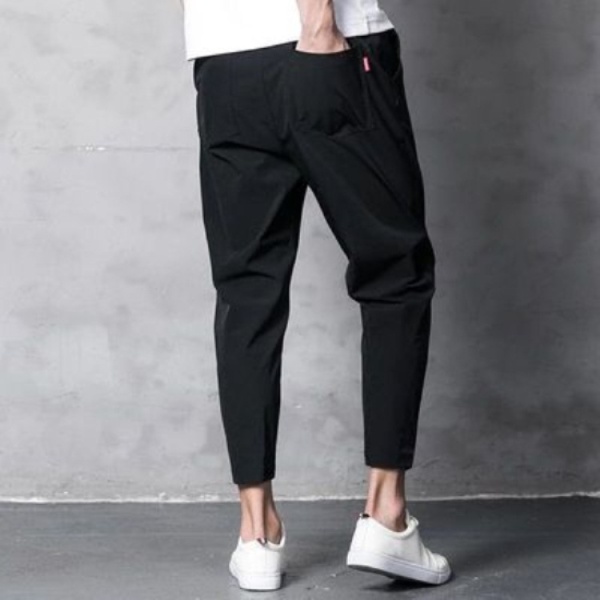 商品属性 [上市年份/季节] 2023年春季 [主要下游平台] ebay,亚马逊,wish,速卖通,独立站,LAZADA [主要销售地区] 非洲,欧洲,南美,东南亚,北美,东北亚,中东 [主面料成分] 锦纶/尼龙 [主面料成分的含量] 60 [厚薄] 普通 [原创设计货源] 是 [图案] 纯色 [工艺] 压皱 [库存类型] 整单 [弹力] 高弹 [是否库存] 是 [是否有腰带] 有腰带 [是否跨境出口专供货源] 是 [有可授权的自有品牌] 否 [有无质检报告] 否 [材质功能] 高弹 [款式] 铅笔裤/小脚裤 [款式细节] 多口袋 [淘货类别] 青春流行(18-24岁) [类别] 运动休闲裤 [腰型] 中腰 [裤型] 宽松型 [裤脚口款式] 小直脚 [裤长] 九分裤 [裤门襟] 系绳闭襟 [误差范围] 1-3厘米 [货源类别] 现货 [适合人群] 青少年 [适合季节] 夏季 [适用场景] 日常 [面料] 弹力面料 [面料名称] 棉类混纺 [风格] 韩版
