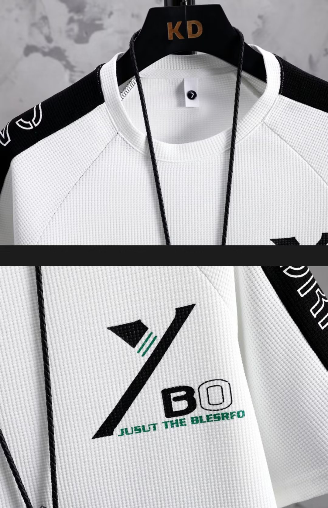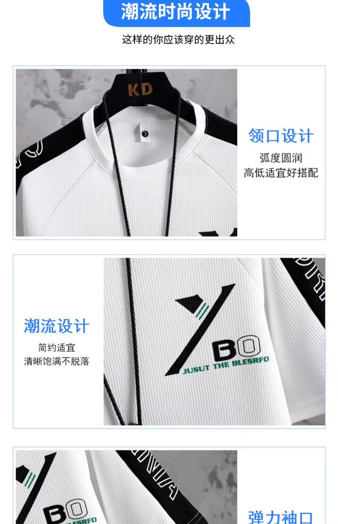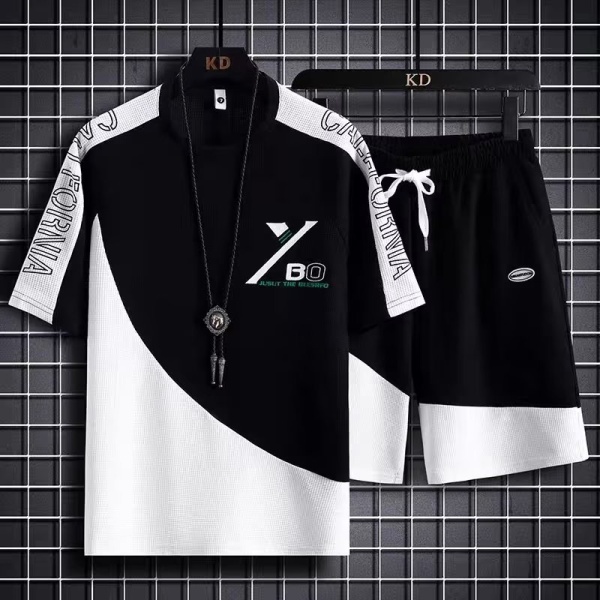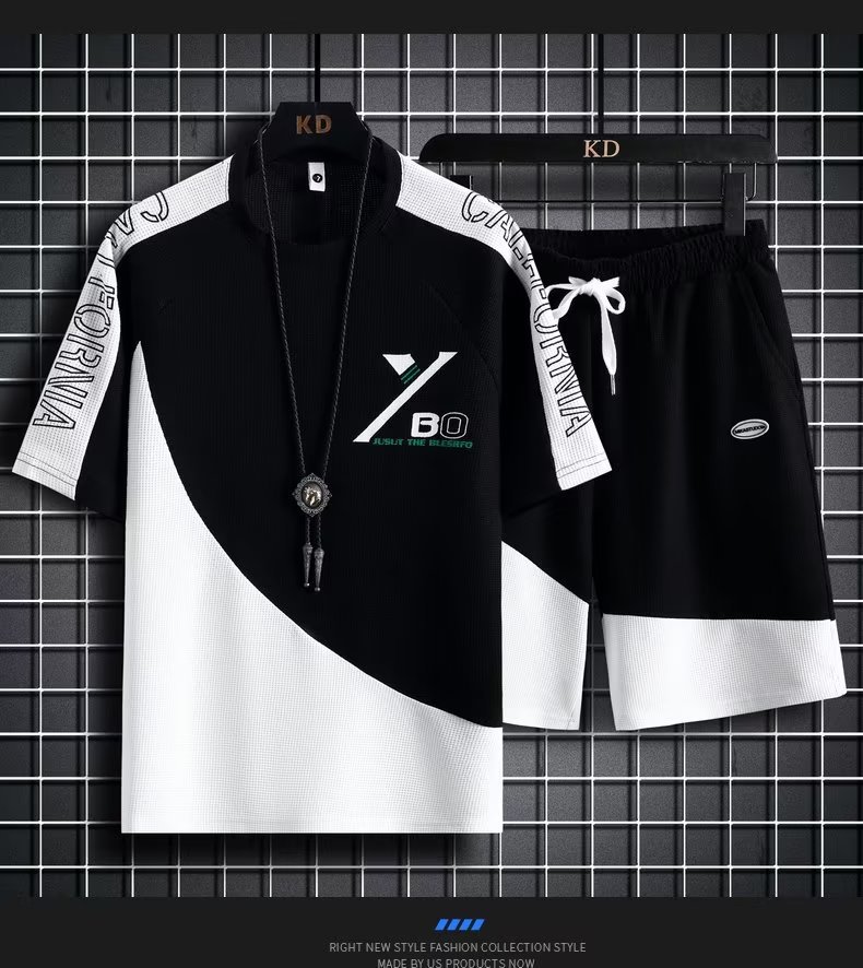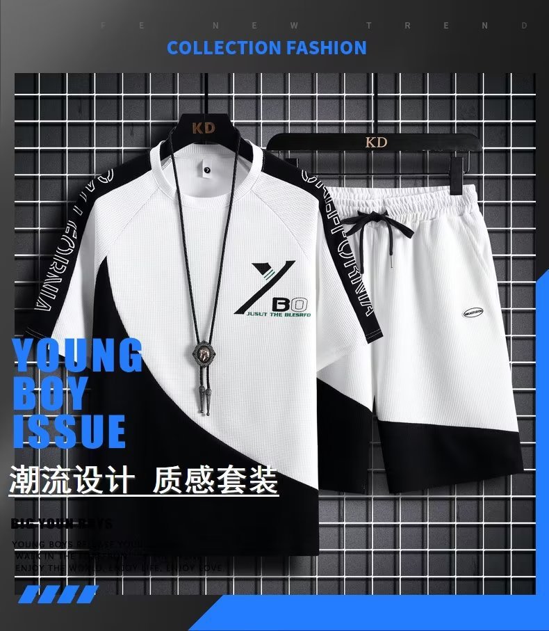 商品属性 [上市年份/季节] 2023年春季 [上衣款式] T恤 [上衣袖长] 五分袖/中袖 [主面料成分] 聚酯纤维(涤纶) [主面料成分的含量] 100 [厚薄] 普通 [原创设计货源] 是 [库存类型] 整单 [是否跨境出口专供货源] 否 [是否连帽] 不连帽 [有无质检报告] 否 [淘货类别] 青春流行(18-24岁) [裤长] 五分裤/中裤 [货源类别] 现货 [适合季节] 春季 [适用场景] 日常 [面料名称] 化纤类混纺 [风格] 运动