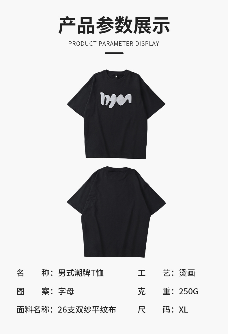 商品属性 [上市年份/季节] 2023年夏季 [主要下游平台] ebay,亚马逊,wish,速卖通,独立站,LAZADA [主要销售地区] 非洲,欧洲,南美,东南亚,北美,东北亚,中东 [主面料成分] 棉 [主面料成分的含量] 96%及以上 [克重] 250g [印花主题] 定制/DIY [厚薄] 薄款 [原创设计货源] 是 [图案] 字母 [工艺] 烫印 [是否跨境出口专供货源] 是 [是否连帽] 不连帽 [最快出货时间] 8-15天 [有可授权的自有品牌] 是 [有无质检报告] 否 [材质功能] 透气,耐磨 [款式] 开衫 [款式细节] 印花 [淘货类别] 青春流行(18-24岁) [版型] 宽松型 [类别] T恤背心 [袖型] 常规 [袖长] 短袖 [误差范围] ±2cm [货源类别] 订货 [适合人群] 青年 [适合季节] 夏季,秋季 [适用场景] 休闲 [面料名称] 纯棉 [领型] 圆领 [风格] 街潮