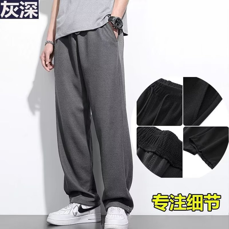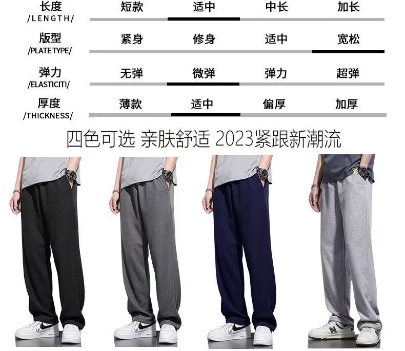 商品属性 [上市年份/季节] 2024年夏季 [主面料成分] 聚酯纤维(涤纶) [主面料成分的含量] 95 [厚薄] 薄款 [原创设计货源] 否 [图案] 纯色 [工艺] 针织 [库存类型] 整单 [弹力] 微弹 [是否库存] 是 [是否有腰带] 无腰带 [是否跨境出口专供货源] 否 [有无质检报告] 否 [材质功能] 透气,耐磨 [款式] 长筒裤 [款式细节] 纯色 [淘货类别] 青春流行(18-24岁) [类别] 运动休闲裤 [腰型] 中腰 [裤型] 直筒型 [裤脚口款式] 直筒 [裤长] 长裤 [裤门襟] 系绳闭襟 [误差范围] 1-2cm [货源类别] 现货 [适合人群] 青少年 [适合季节] 夏季 [适用场景] 休闲 [面料] 弹力面料 [面料名称] 化纤类混纺 [风格] 运动