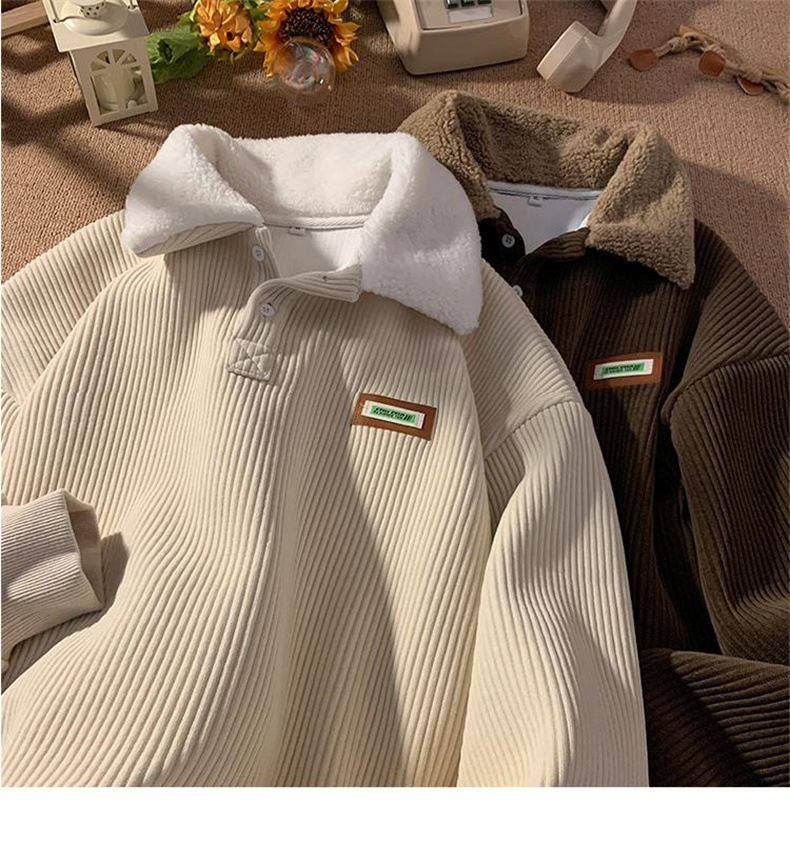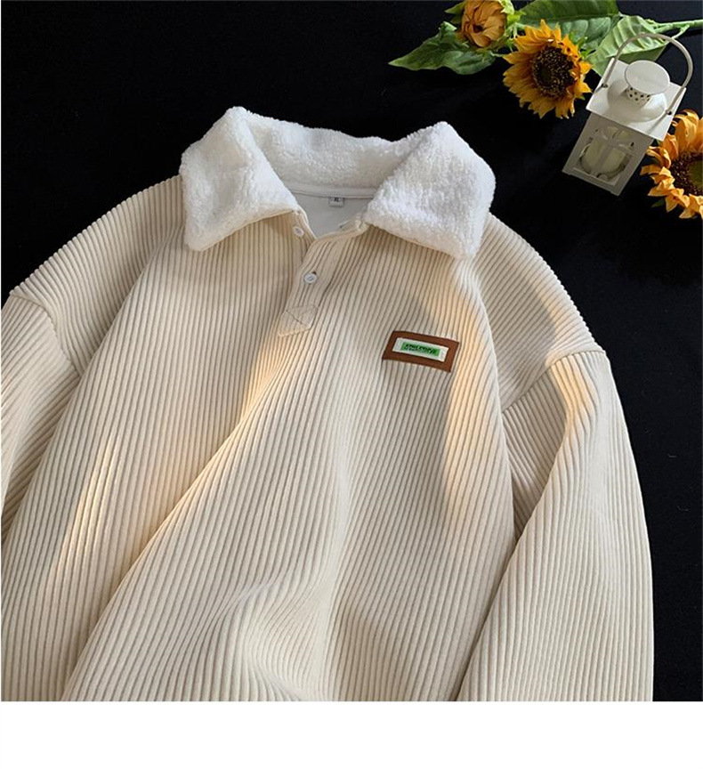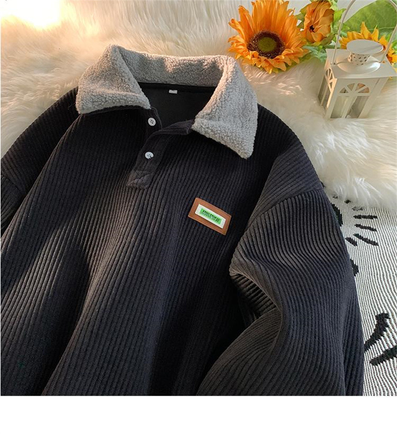 商品属性 [上市年份/季节] 2024年冬季 [主面料成分] 聚酯纤维(涤纶) [主面料成分的含量] 68 [克重] 350g(含)-400g(不含) [厚薄] 加绒 [原创设计货源] 否 [图案] 拼色 [工艺] 拼贴/拼接 [库存类型] 整单 [是否库存] 是 [是否连帽] 不连帽 [有无质检报告] 否 [款式] 套头 [淘货类别] 青春流行(18-24岁) [版型] 宽松型 [袖长] 长袖 [误差范围] 1-3CM [货源类别] 现货 [适合人群] 青少年 [适合季节] 冬季 [适用场景] 休闲 [面料名称] 化纤类混纺 [领型] 翻领 [风格] 韩版