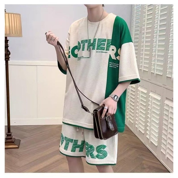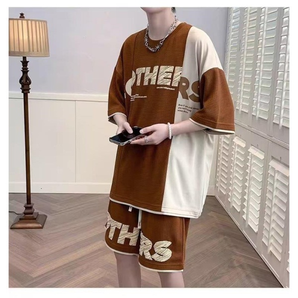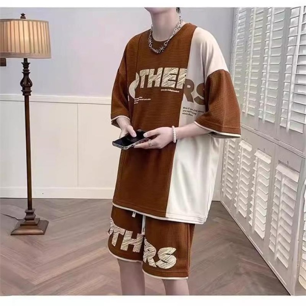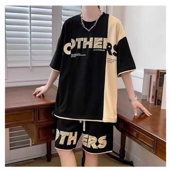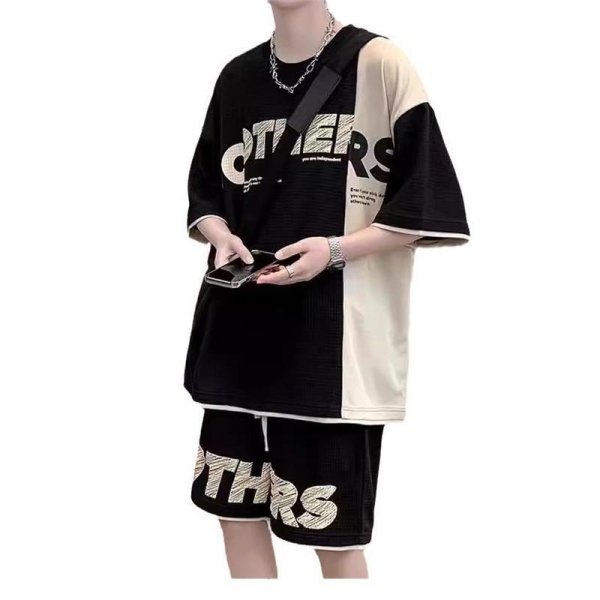 商品属性 [上市年份/季节] 2024年夏季 [上衣款式] T恤 [上衣袖长] 短袖 [主面料成分] 聚酯纤维(涤纶) [主面料成分的含量] 100 [厚薄] 普通 [原创设计货源] 否 [是否跨境出口专供货源] 是 [是否连帽] 不连帽 [有无质检报告] 否 [淘货类别] 青春流行(18-24岁) [裤长] 五分裤/中裤 [货源类别] 现货 [适合季节] 夏季 [适用场景] 运动 [面料名称] 化纤类混纺 [风格] 运动