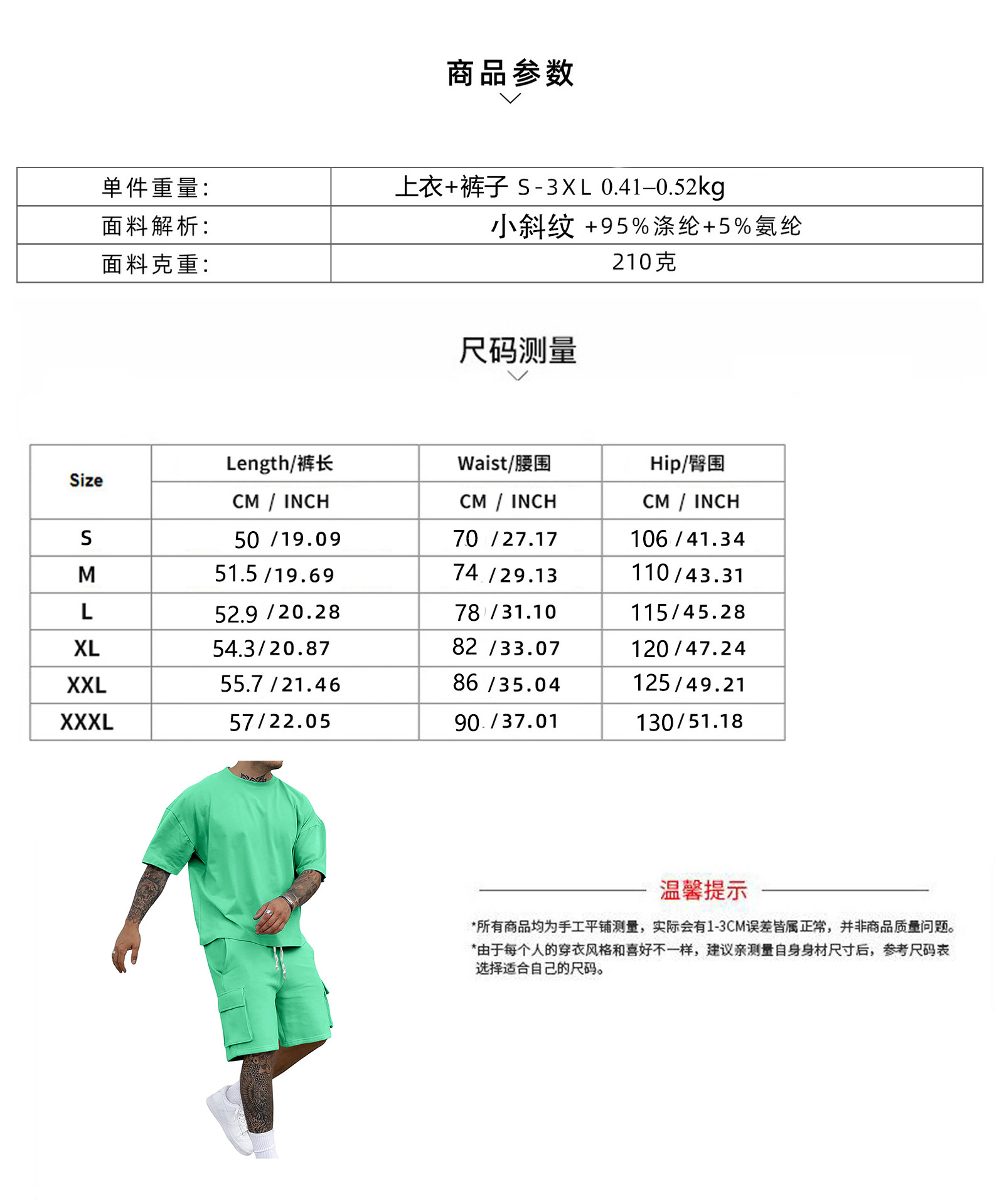 商品属性 [上市年份/季节] 2025夏季 [上衣款式] T恤 [上衣袖长] 短袖 [主要下游平台] 独立站,LAZADA,其他 [主要销售地区] 欧洲,南美,东南亚,北美,东北亚,中东 [主面料成分] 聚酯纤维(涤纶) [主面料成分的含量] 95 [厚薄] 薄款 [原创设计货源] 否 [库存类型] 整单 [是否跨境出口专供货源] 是 [是否连帽] 不连帽 [有可授权的自有品牌] 否 [有无质检报告] 否 [淘货类别] 时尚都市(24-35岁) [裤长] 短裤 [货源类别] 现货 [适合季节] 夏季 [适用场景] 休闲 [面料名称] 化纤类混纺 [风格] 运动休闲