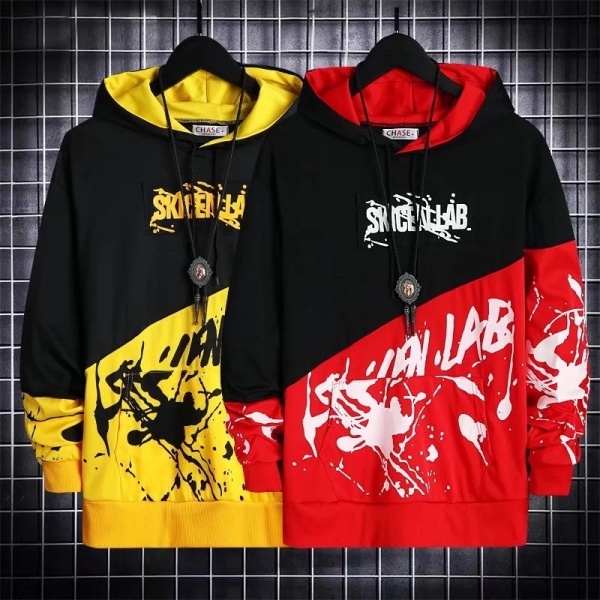 商品属性 [上市年份/季节] 2024年春季 [主面料成分] 聚酯纤维(涤纶) [主面料成分的含量] 95 [克重] 250g(含)-300g(不含) [厚薄] 普通 [原创设计货源] 否 [图案] 抽象 [工艺] 免烫处理 [库存类型] 整单 [是否套装] 否 [是否库存] 是 [是否跨境出口专供货源] 是 [是否连帽] 连帽 [有可授权的自有品牌] 否 [有无内胆] 无内胆 [有无质检报告] 否 [服装口袋样式] 侧缝插袋 [款式] 套头 [款式细节] 撞色 [淘货类别] 青春流行(18-24岁) [版型] 宽松型 [袖型] 常规 [袖长] 长袖 [误差范围] 2 [货源类别] 现货 [适合人群] 青少年 [适合季节] 四季 [适用场景] 日常 [门襟] 1 [面料名称] 棉类混纺 [领口形状] 圆领 [领型] 无领 [风格] 韩版