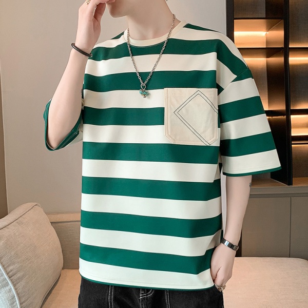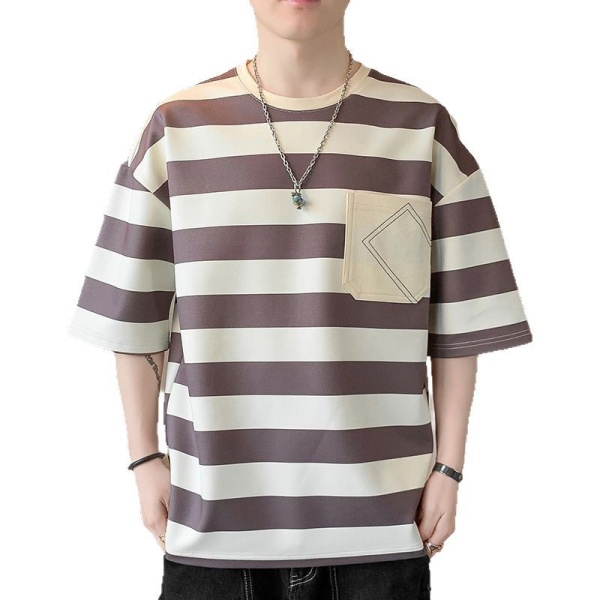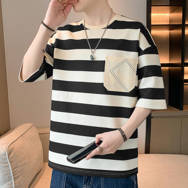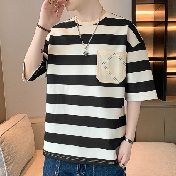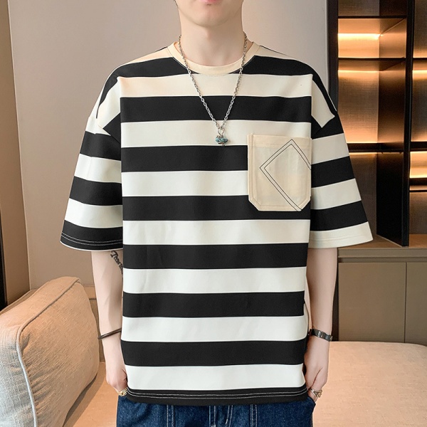 商品属性 [上市年份/季节] 2025夏季 [主面料成分] 聚酯纤维(涤纶) [主面料成分的含量] 91%(含)-95%(含) [克重] 180g(含)-250g(不含) [厚薄] 薄款 [原创设计货源] 否 [图案] 条纹 [工艺] 无 [库存类型] 整单 [是否库存] 是 [是否连帽] 不连帽 [有无质检报告] 否 [材质功能] 其他 [款式] 套头 [款式细节] 拼色 [淘货类别] 青春流行(18-24岁) [版型] 宽松型 [类别] T恤背心 [袖型] 常规 [袖长] 五分袖/中袖 [货源类别] 现货 [适合人群] 青少年 [适合季节] 夏季,春秋季 [适用场景] 日常 [面料名称] 化纤类混纺 [风格] 港风