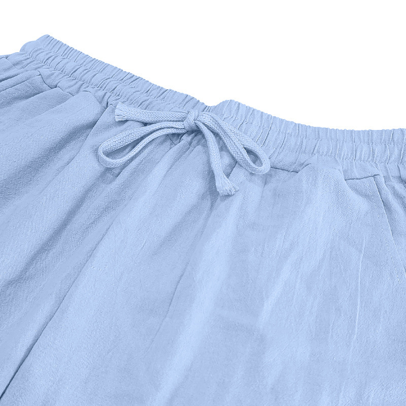 商品属性 [上市年份/季节] 2025夏季 [主要下游平台] ebay,亚马逊,wish,速卖通,独立站,LAZADA,其他 [主要销售地区] 非洲,欧洲,南美,东南亚,北美,东北亚,中东,其他 [主面料成分] 亚麻 [主面料成分的含量] 95 [厚薄] 普通 [原创设计货源] 是 [图案] 纯色 [工艺] 针织 [库存类型] 整单 [弹力] 无弹 [是否库存] 是 [是否有腰带] 无腰带 [是否跨境出口专供货源] 是 [有可授权的自有品牌] 否 [有无质检报告] 否 [材质功能] 免烫 [款式] 长筒裤 [款式细节] 口袋装饰 [淘货类别] 时尚都市(24-35岁) [类别] 运动休闲裤 [腰型] 中腰 [裤型] 直筒型 [裤脚口款式] 直筒 [裤长] 长裤 [裤门襟] 系绳闭襟 [误差范围] 1-3CM [货源类别] 现货 [质检报告编号] 000000 [适合人群] 青年 [适合季节] 夏季 [适用场景] 休闲 [面料] 麻 [面料名称] 麻 [风格] 轻熟休闲