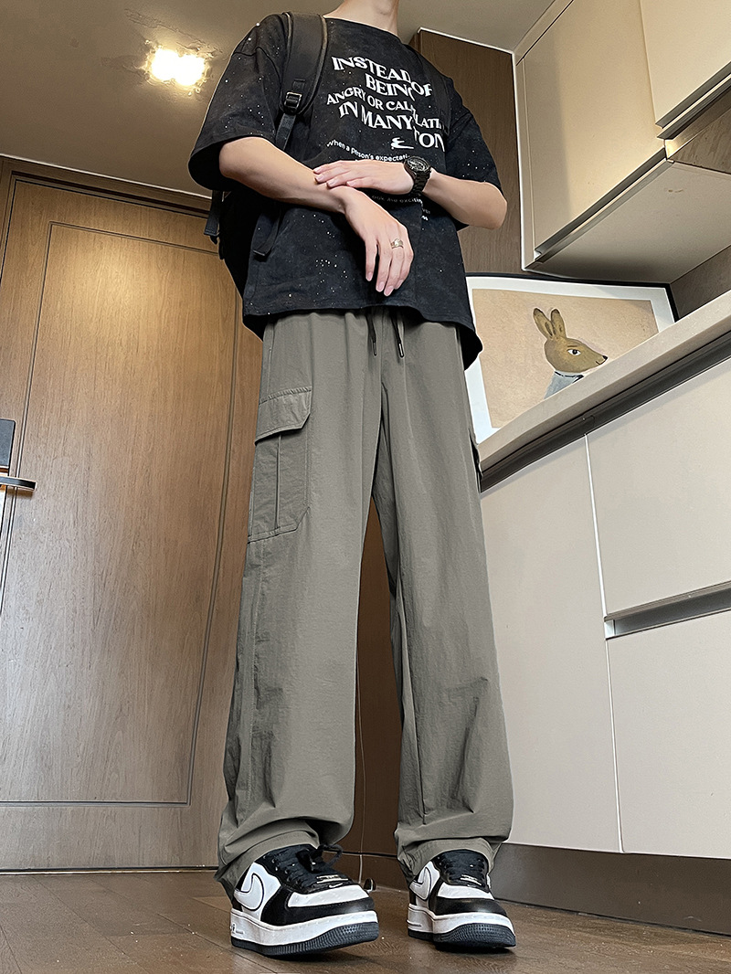 商品属性 [上市年份/季节] 2025夏季 [主面料成分] 锦纶/尼龙 [主面料成分的含量] 60 [厚薄] 薄款 [原创设计货源] 否 [弹力] 高弹 [有无质检报告] 否 [材质功能] 透气,高弹 [款式] 长筒裤 [腰型] 高腰 [裤型] 直筒型 [裤长] 长裤 [货源类别] 现货 [适合人群] 青少年 [适合季节] 夏季 [面料名称] 化纤类混纺 [风格] 日系工装