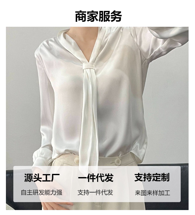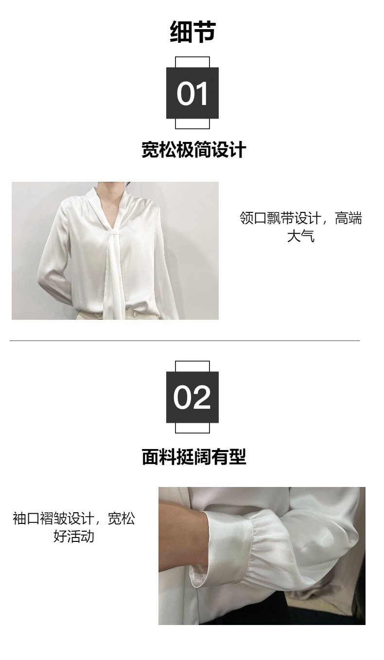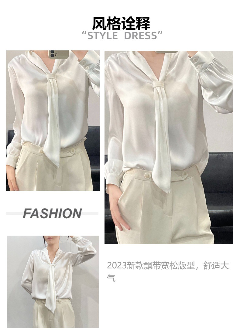 商品属性 [上市年份/季节] 2023年夏季 [主面料成分] 聚酯纤维 [主面料成分含量] 95%及以上 [是否跨境货源] 否 [款式] 开衫 [流行元素] 飘带 [版型] 宽松型 [衣长] 中长款(65cm<衣长≤80cm) [袖型] 常规袖 [袖长] 长袖 [门襟] 套头 [面料名称] 涤纶 [领型] 荡领 [风格] 通勤风 [风格类型] 气质通勤