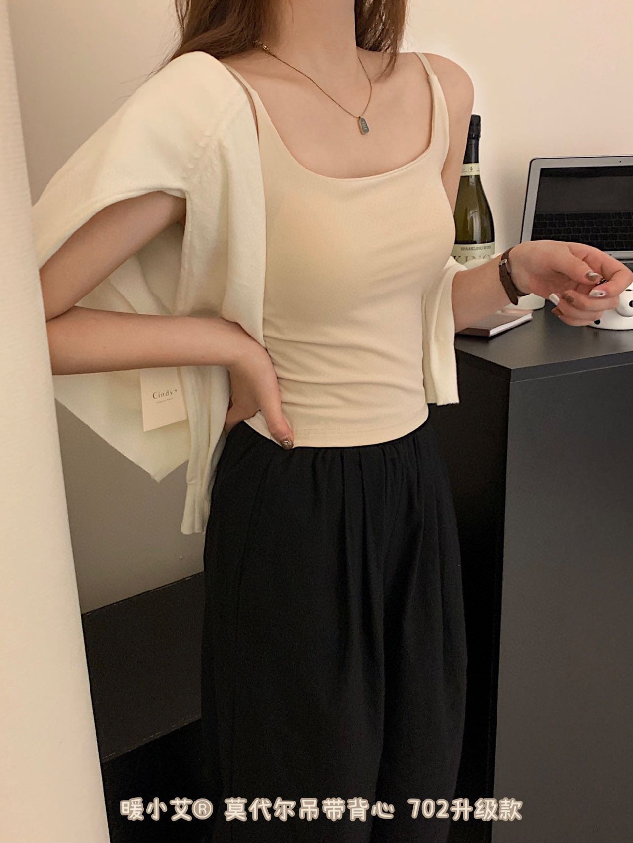 商品属性 [上市年份/季节] 2023年春季 [主要下游销售地区1] 欧美 [主要下游销售地区2] 东南亚 [主面料成分] 莫代尔纤维 [主面料成分2] 氨纶 [主面料成分2含量] 30%以下 [主面料成分含量] 90%(含)-95%(不含) [图案] 纯色 [弹力] 中弹 [是否跨境货源] 是 [款式] 吊带款 [流行元素] 背带 [版型] 修身型 [肩带样式] 不可拆卸 [衣长] 超短款(≤40CM) [跨境风格类型] 甜美清新 [面料名称] 莫代尔 [风格] 少女风 [风格类型] 清新甜美