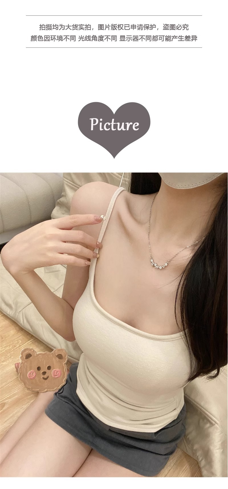 商品属性 [上市年份/季节] 2024年秋季 [主面料成分] 其他 [主面料成分含量] 95%及以上 [图案] 纯色 [弹力] 高弹 [是否跨境货源] 否 [款式] 吊带 [流行元素] 露背 [版型] 修身型 [肩带样式] 不可拆卸 [衣长] 普通款(50cm<衣长≤65cm) [面料名称] 其他 [风格] 通勤风 [风格类型] 气质通勤